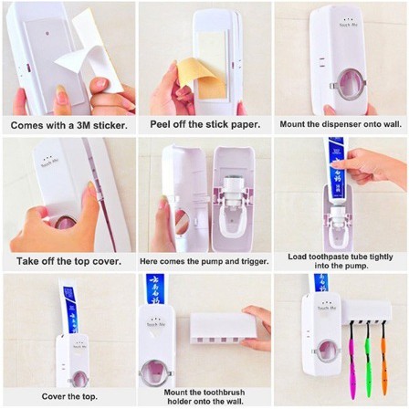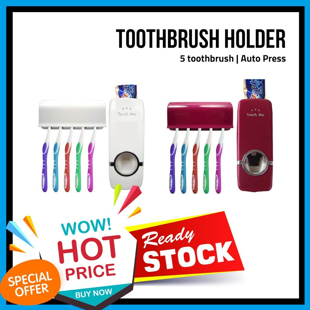 !! CLEARENCE SALE !! Automatic Toothpaste Dispenser Squeeze Touch Me Toothbrush Holder Set Suction Pad Wall