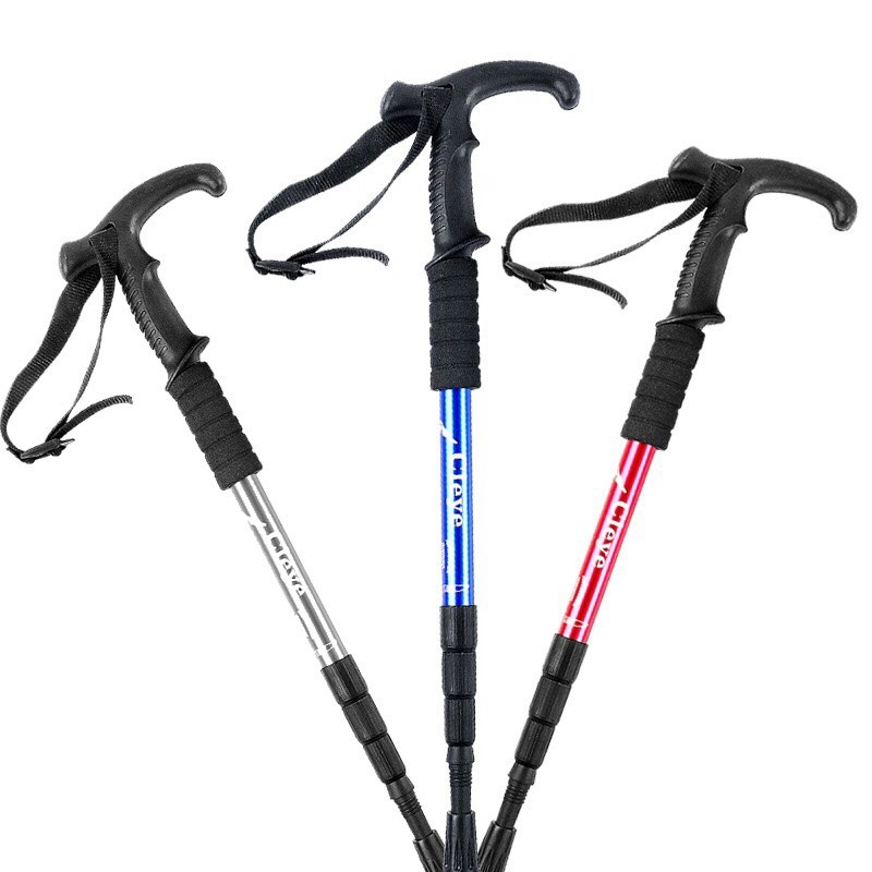 Hiking Stick Light Weight Trekking Pole Anti-Shock Adjustable Aluminium Leg Support Cane Stick Outdoor Walking Stick