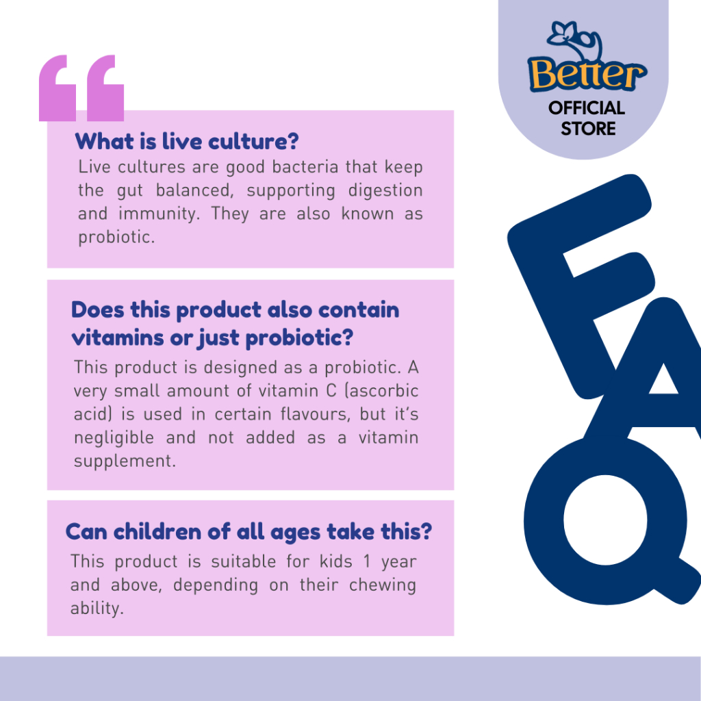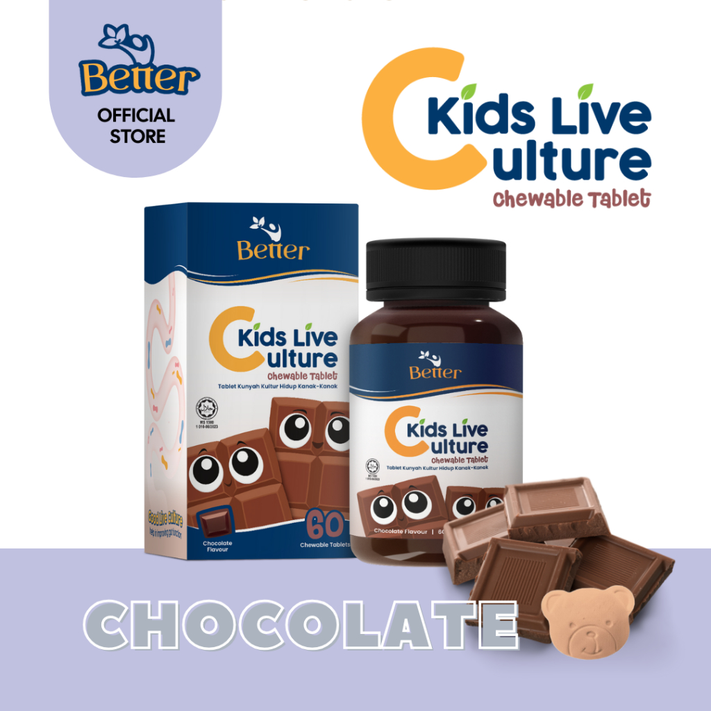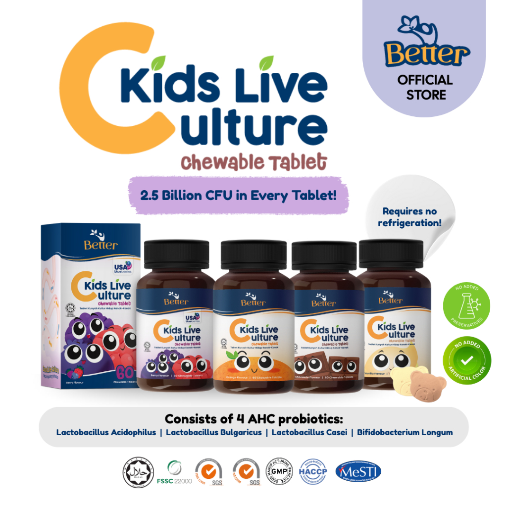 (HALAL) Better Kids Live Culture Chewable Tablet 60’s. Probiotic – 100% Natural Colours and No Preservatives