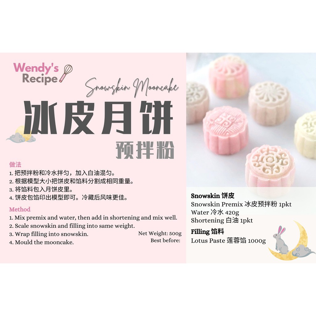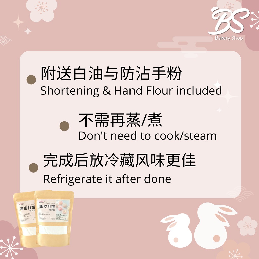 【冰皮月饼预拌粉 Snow skin Mooncake Premix】中秋月饼 Peng Pei Mooncake flour Snow skin mix ready made BS BAKERY SHOP✦附食谱白油手粉✦