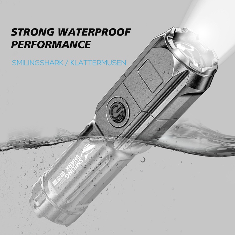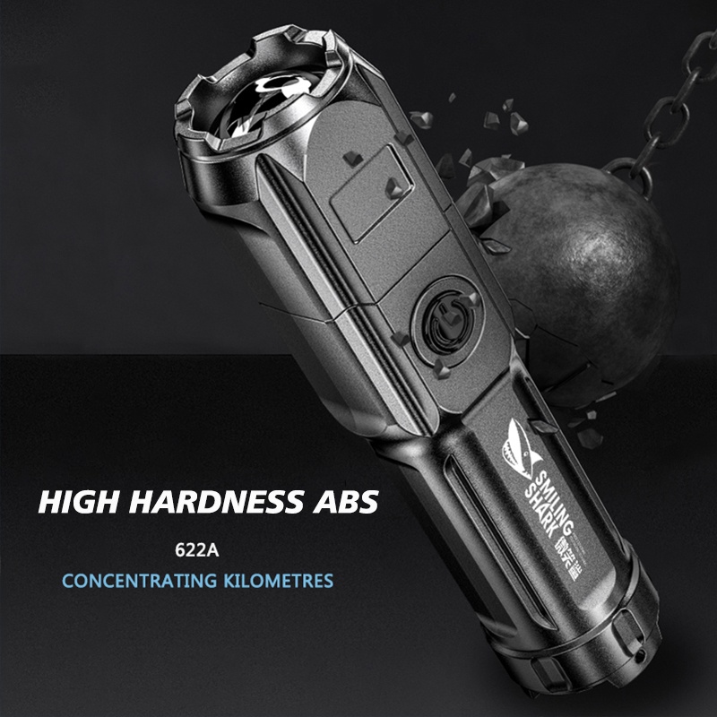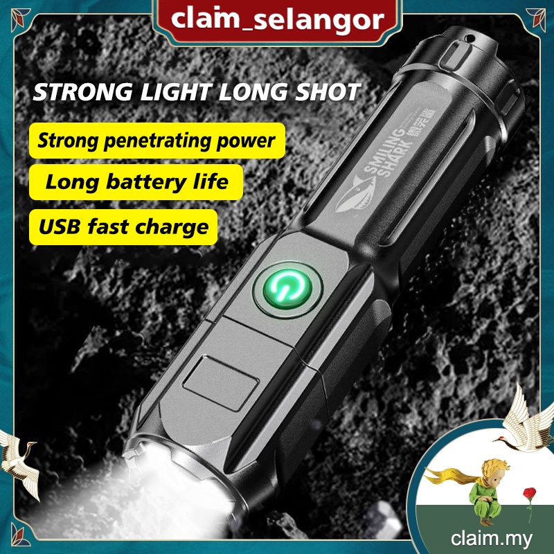 ✨✨[100% original]SMILING SHARK Flashlight Super Bright Torch Light Waterproof Zoomable Outdoor Rechargeable Lights