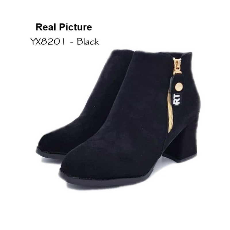 ✨READY STOCK✨ 8201 Mid-Tube Zipper Boots thick zip ankle pointed toe