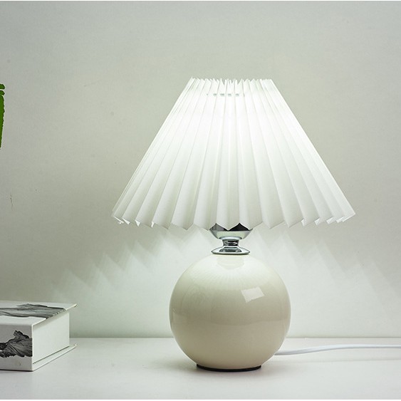 Table Lamp Night Light Desk Lamp INS Chinese and Korean style Pleated Table Lamp Cover warm bedroom bedside