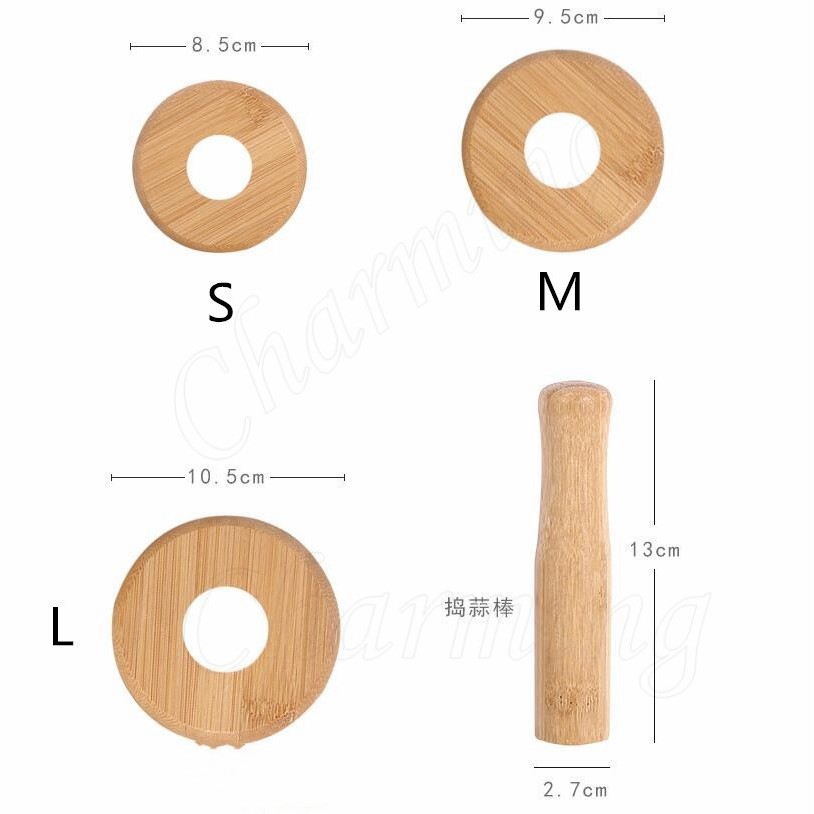 ❉Grinding Set Bamboo Mortar And Pestle Pedestal Bowl Garlic Pot Spice Pepper Salad Mill Kitchen Tools