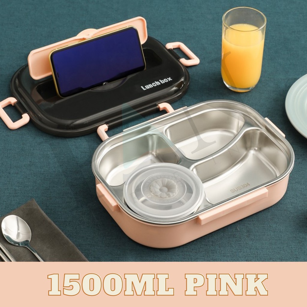 Large 1500ml 304 Stainless Steel Bento Lunch Box Keep Warm Food Container 保温饭盒 便当盒 Bekal Makanan