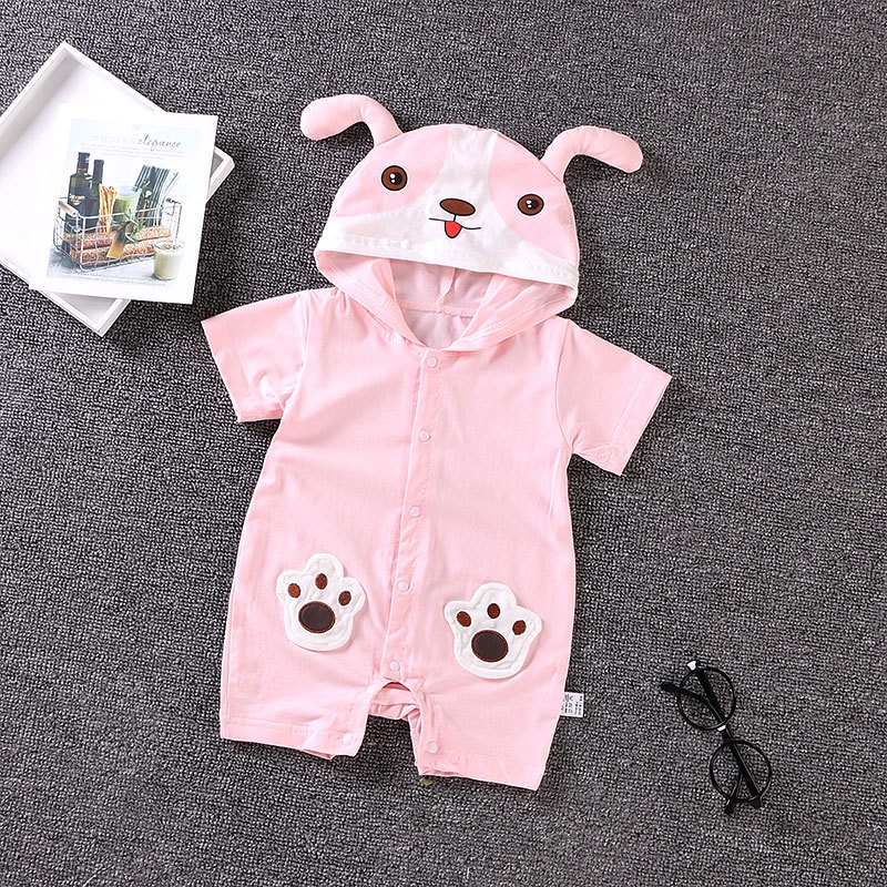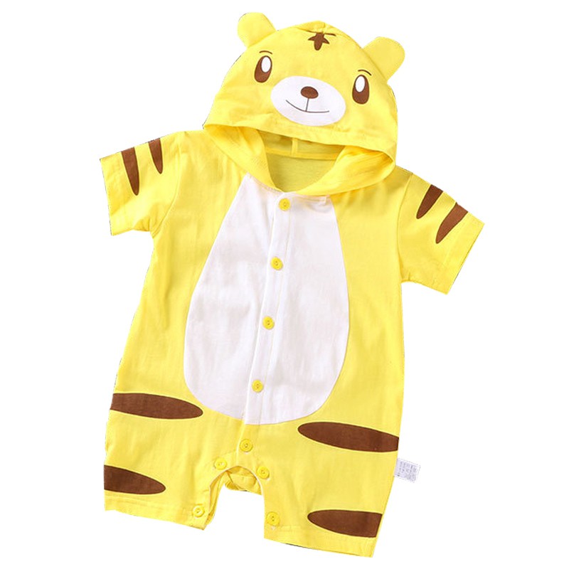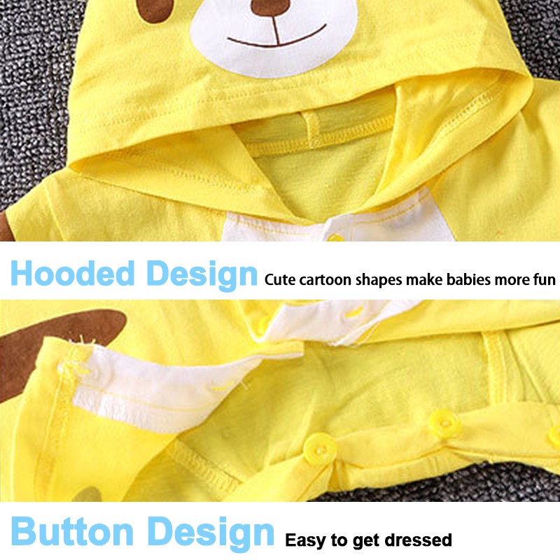 Baju Kartun Comel Baby Rompers Short Sleeve Jumpsuit Animals Newborn Hooded Boy Girl Clothes