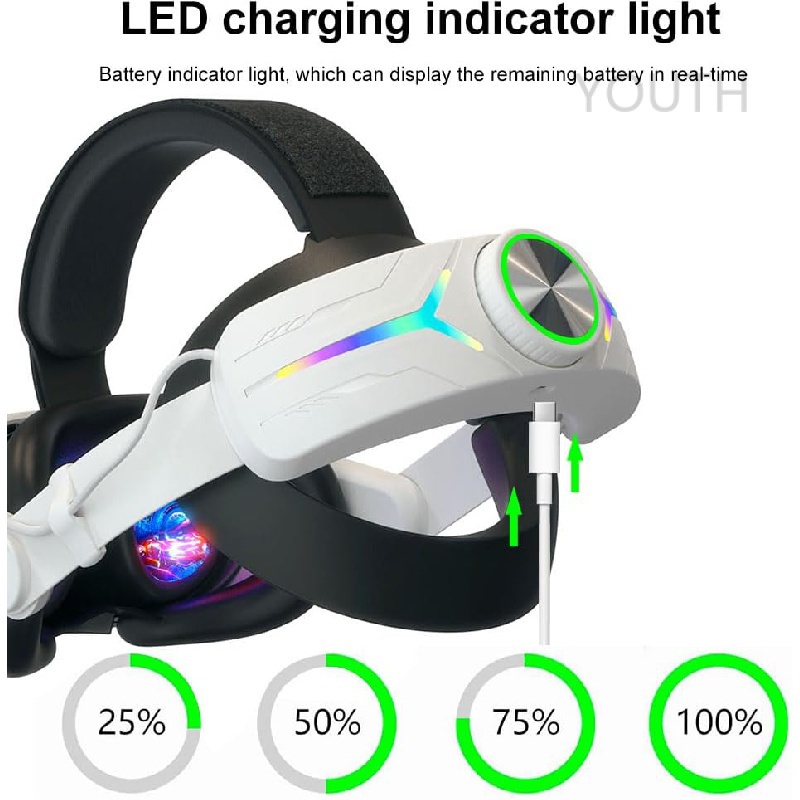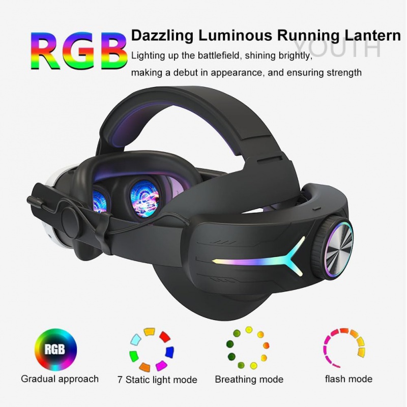 Head Strap Compatible with Meta Quest 3 with 8000mAh Battery VR Accessories for Quest 3 Comfort Adjustable Elite Strap with RGB Light