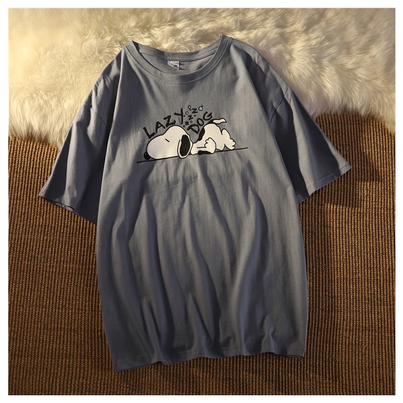 【40-100kg/Pure Cotton】 Korean Style Plus Size Cotton T-shirt Snoopy Pattern Printed Tee For Big Size Ladies Round Neck Short Sleeve Casual T-shirt Summer Fashion Women's Oversized Loose Fit Tops