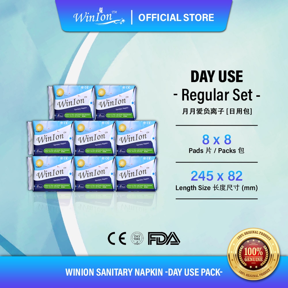 【8 Packs - Regular Set】Day Use【月月爱负离子全日用套装 - Winalite Winion Day Use Sanitary Napkin】