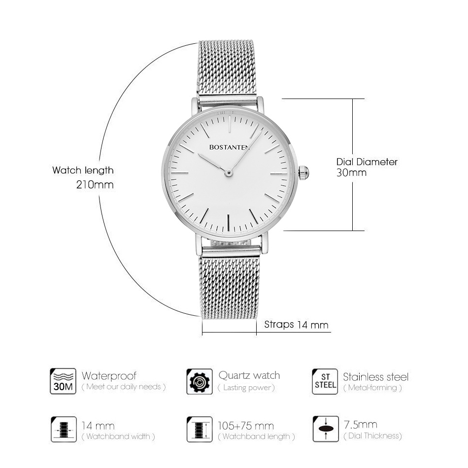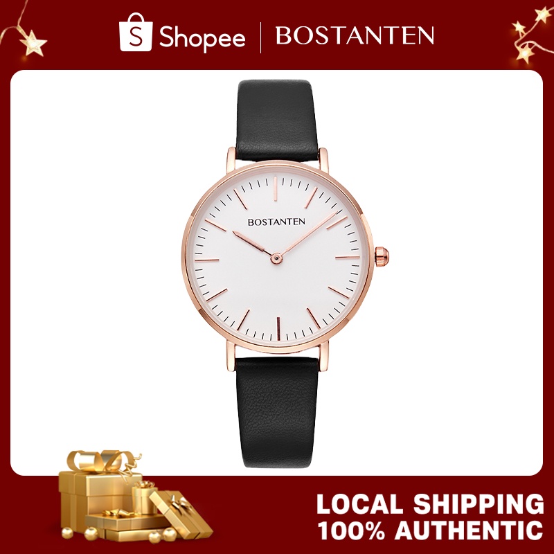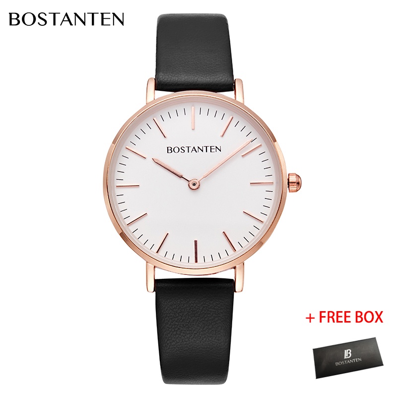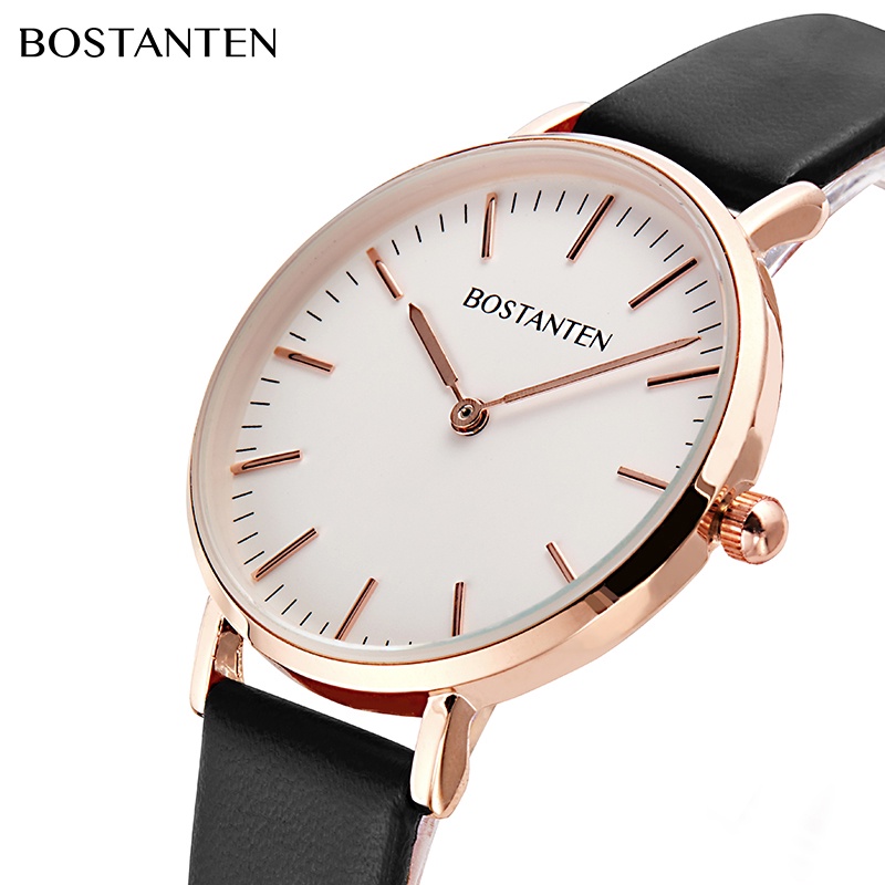 【Bostanten Official】 Fashion Leather Steel Watch for Women Simple Quartz Casual Jam Tangan Wanita