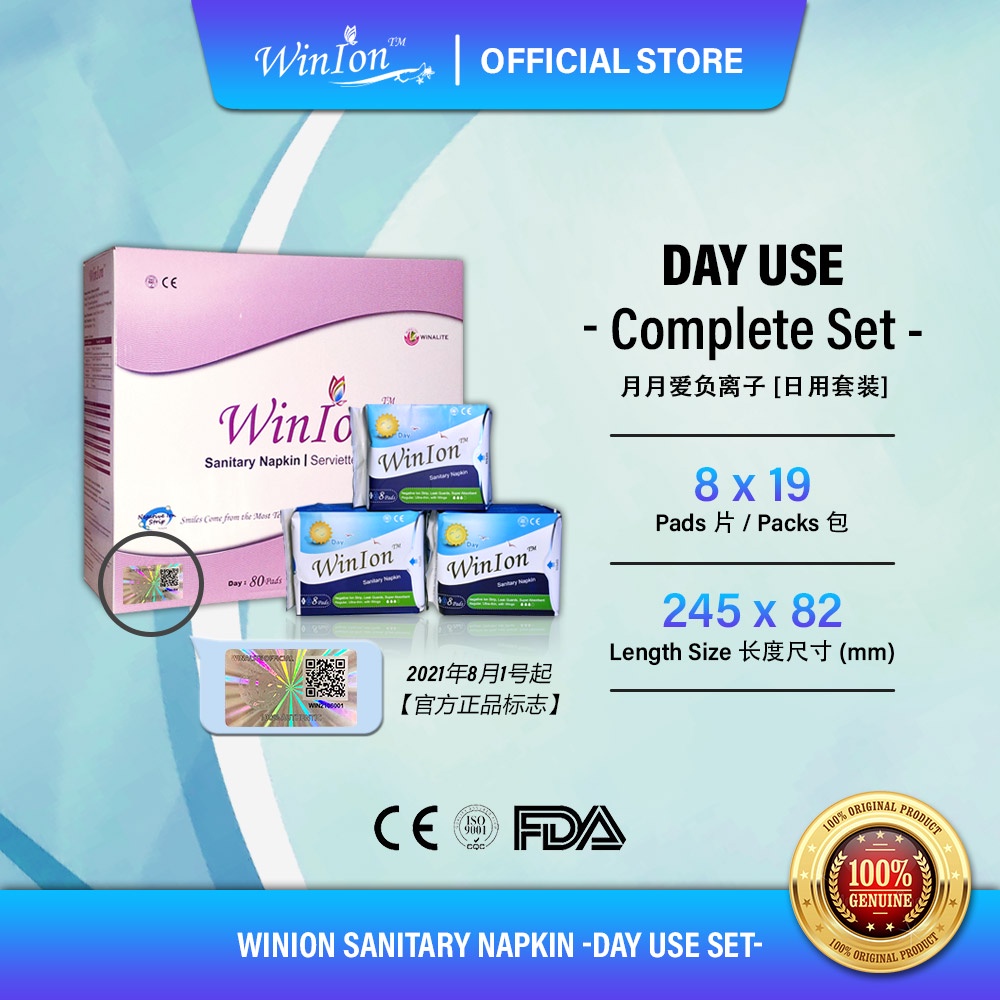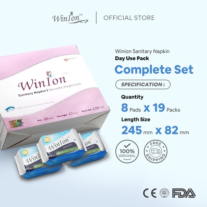 💥Exp FEB /2028💥𝙁𝙍𝙀𝙀 2 𝙋𝙖𝙘𝙠𝙨【Winalite WinIon Napkin Complete Set : 19 Packs】Day Use【月月爱负离子全日用套装 - Winalite Winion Day Us