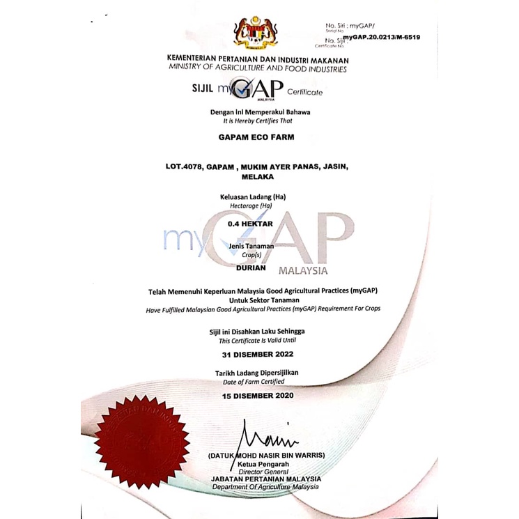 【FRESH】Gapam Eco Farm Organic Durian Pulp 350g 有机老树榴莲 D24 D13 Khawin Kampung Musang King 红虾 Old Tree Durian