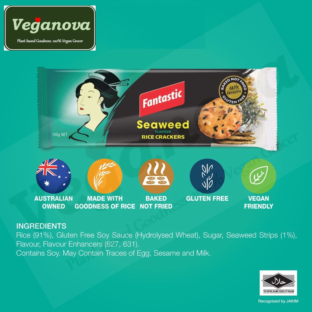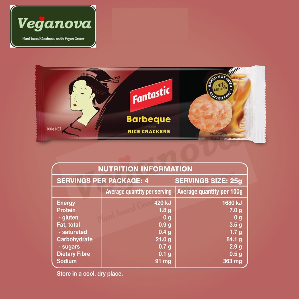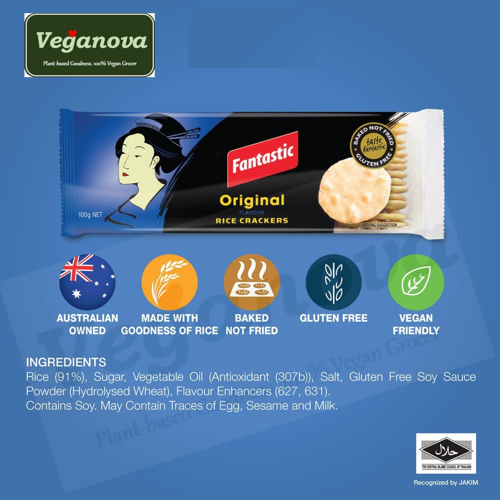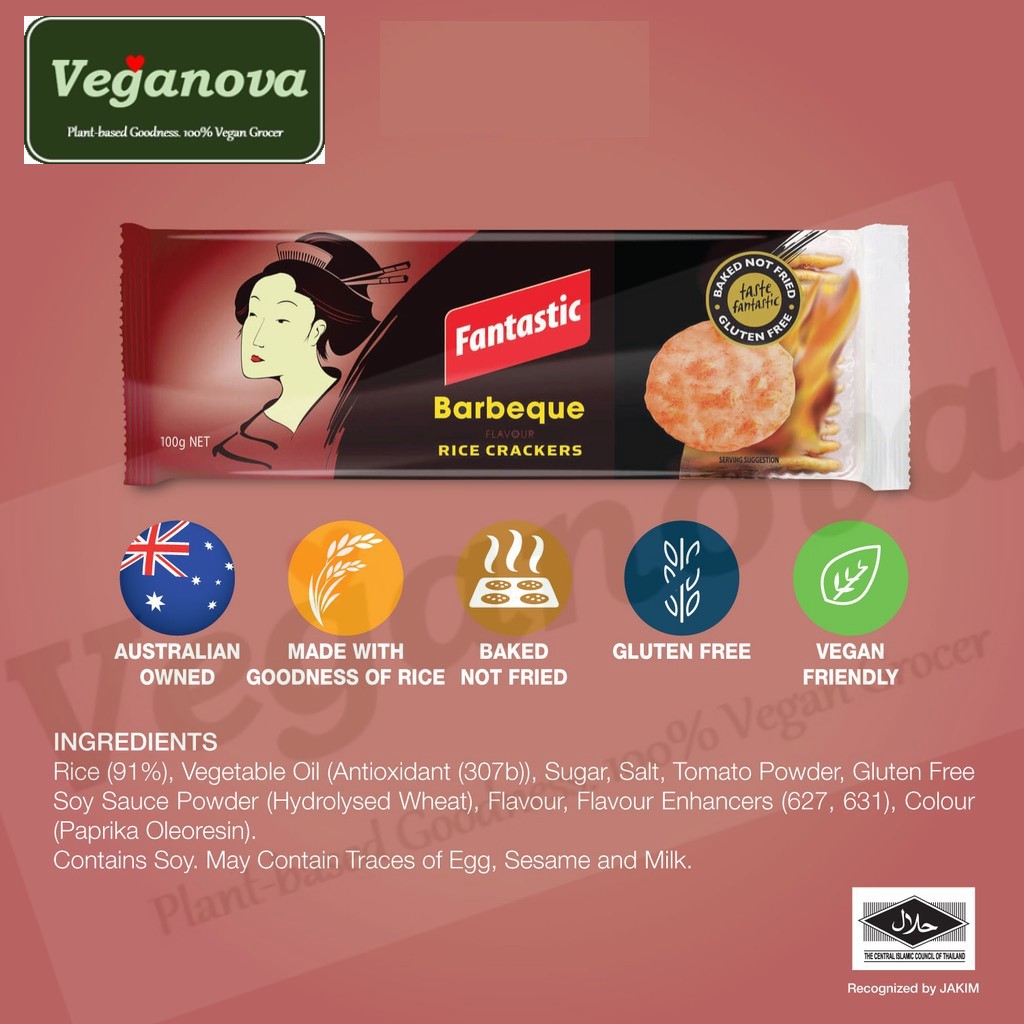 【Fantastic】Vegan Gluten Free Rice Crackers (Original / Barbeque / Seaweed) 100g HALAL