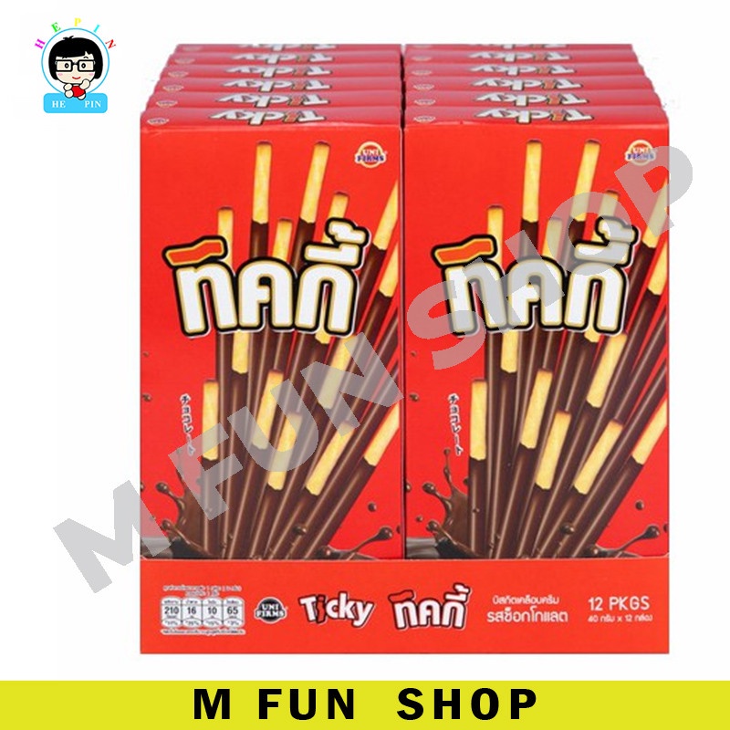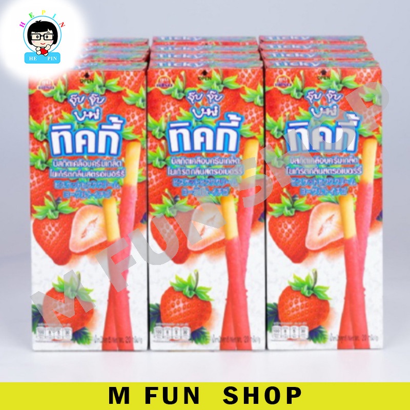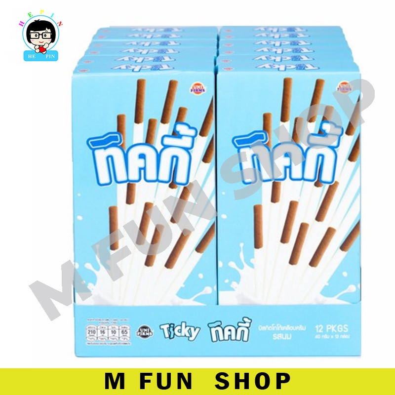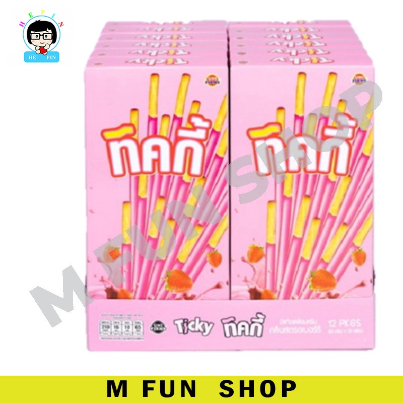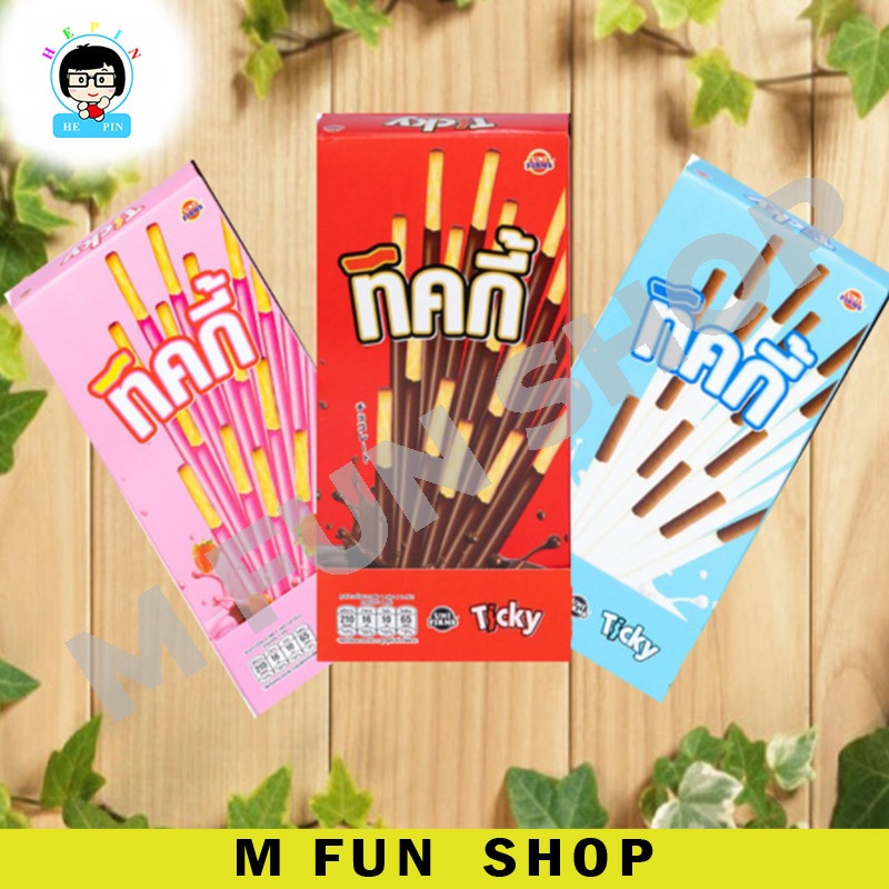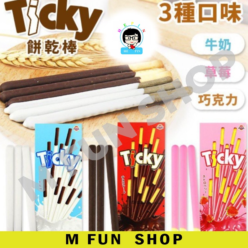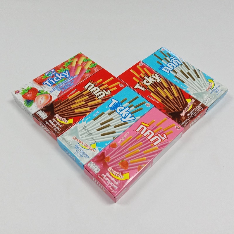 Snek Thailand Ticky Two Tone Biskut Stick Dengan Krim 18g Coklat/ Susu/ Strawberi/ Yogurt