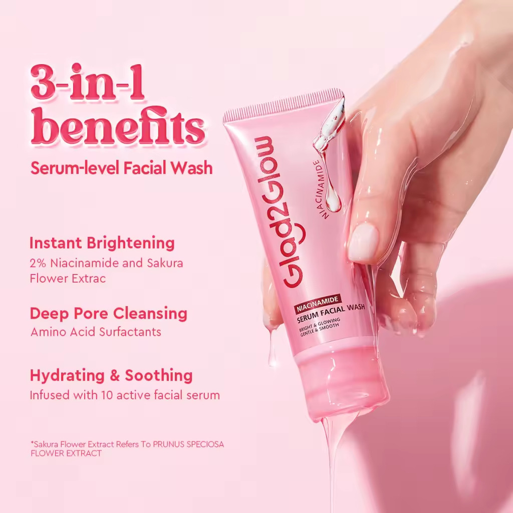 【NEW LAUNCH】Glad2Glow Niacinamide Serum Facial Wash Cleanser Brightening Hydrating Glowing Face Wash Pencuci Muka