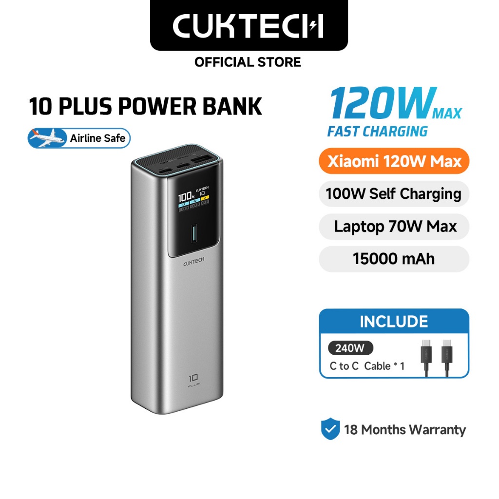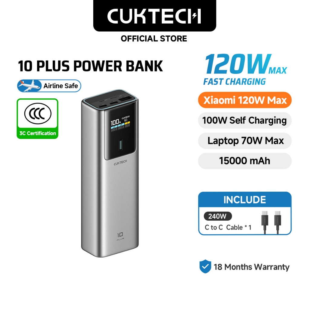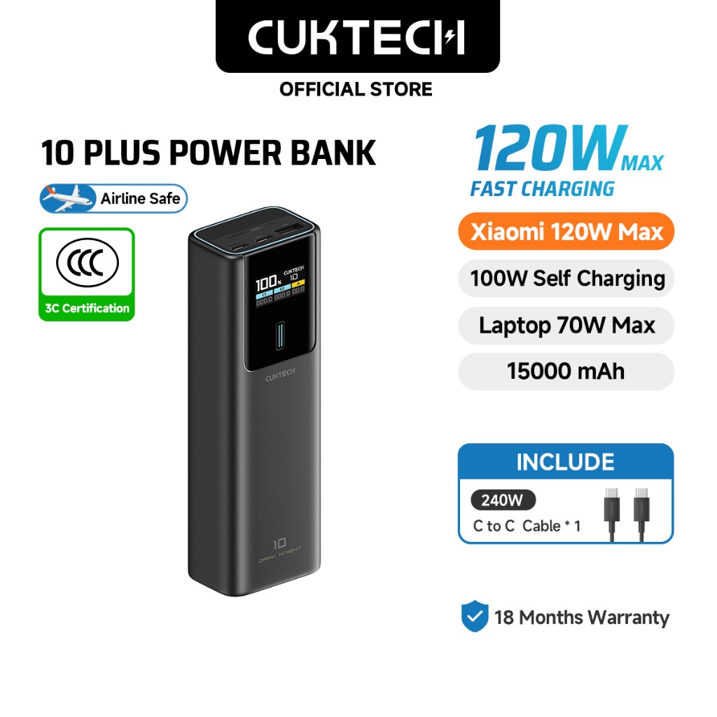【3C Certification】CUKTECH 120W Fast Charging 15000mAh Powerbank Xiaomi 120W Max Samsung 45W iP16/15/14 Laptop & Phone (10 Power Bank Plus)