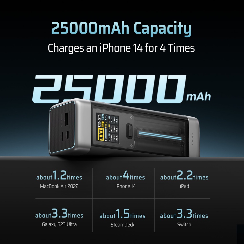 【3C Certification】CUKTECH 210W Fast Charging 25000mAh Powerbank Xiaomi 120W Max Samsung 45W iP16/15/14 Laptop & Phone(20 Power Bank)