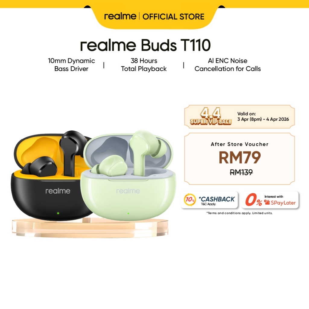 realme Buds T110 | 10mm Dynamic Bass Driver | 38 Hours Total Playback | Al ENC Noise Cancellation for Calls