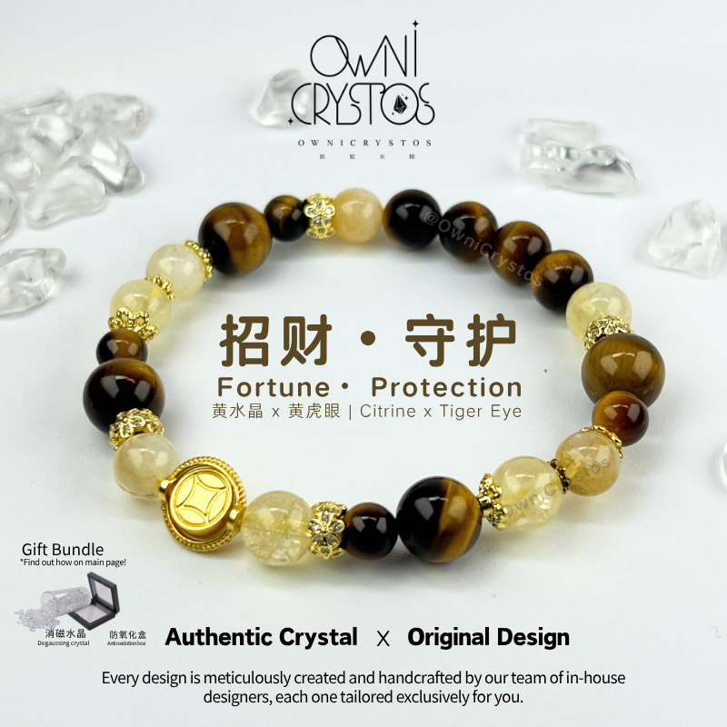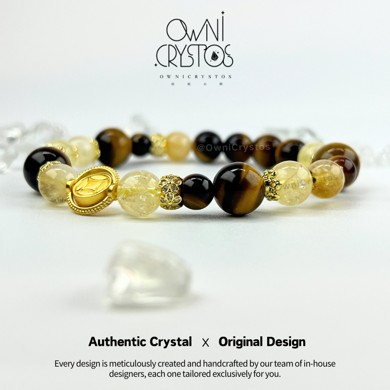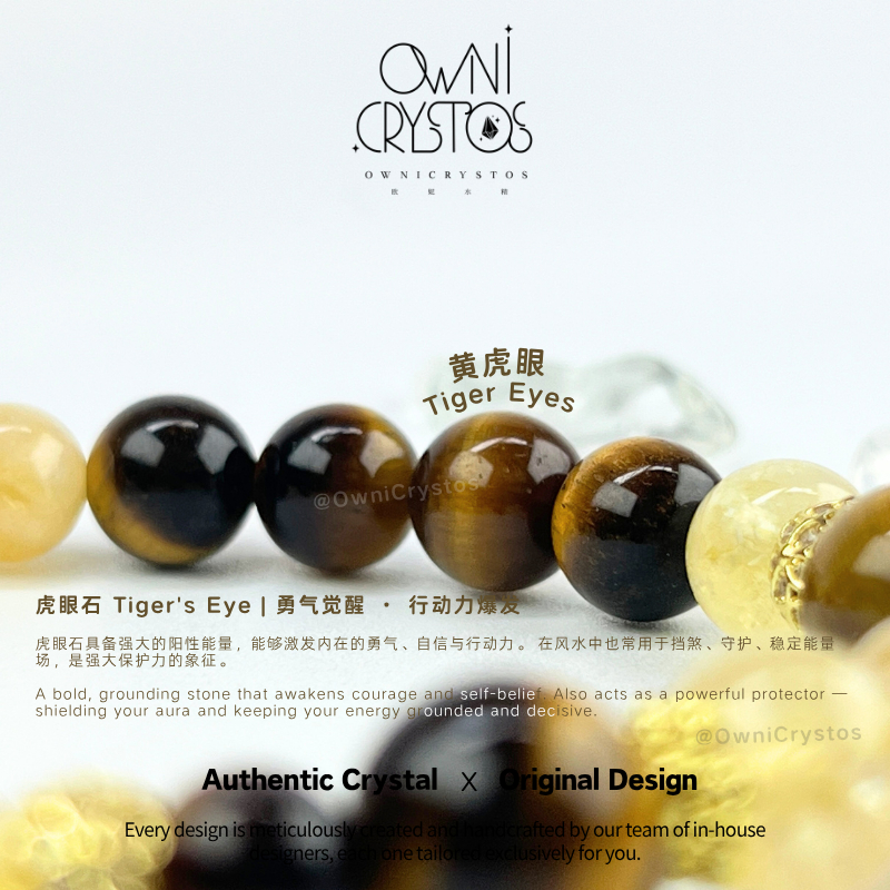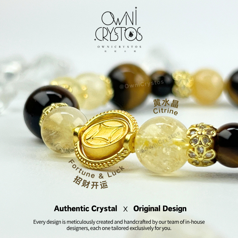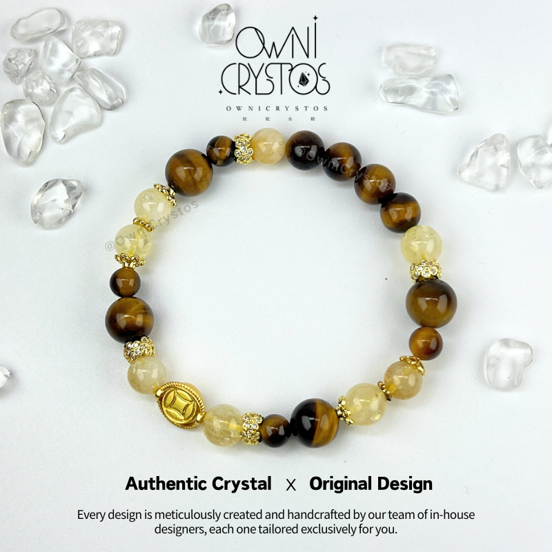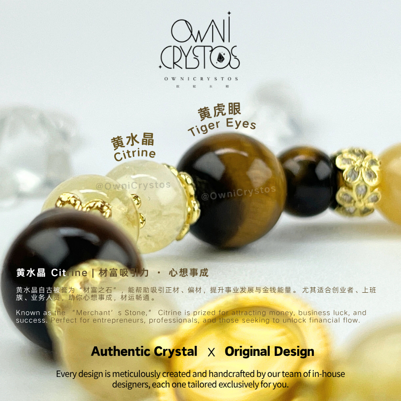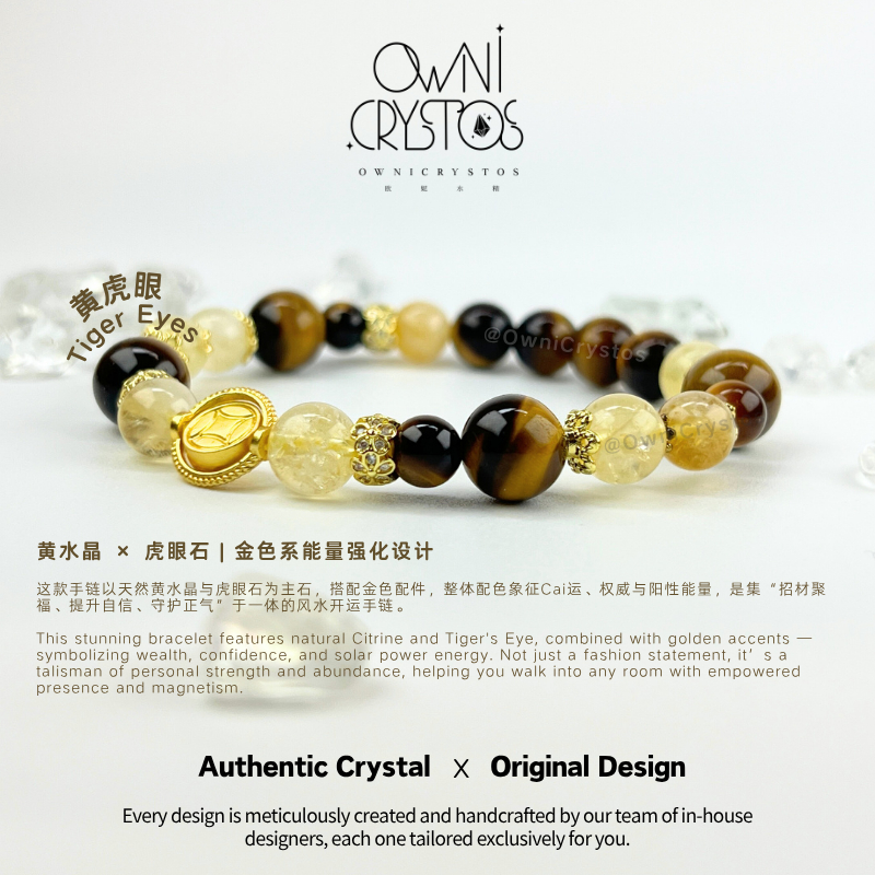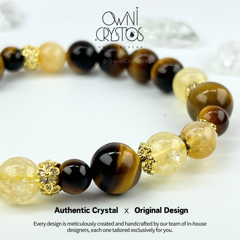 【OwniCrystos】Original Tiger Eye Citrine for Wealth Courage Natural crystal stone bracelet for woman