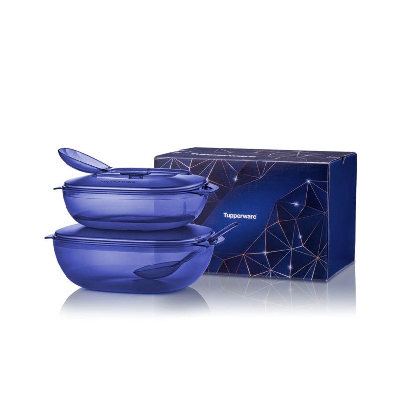 【READYSTOCK】(1.8L & 2.5L + 2 Spoon + Gift Box) Tupperware Royale Blue Crystalline Serveware Set Small Server 600ml
