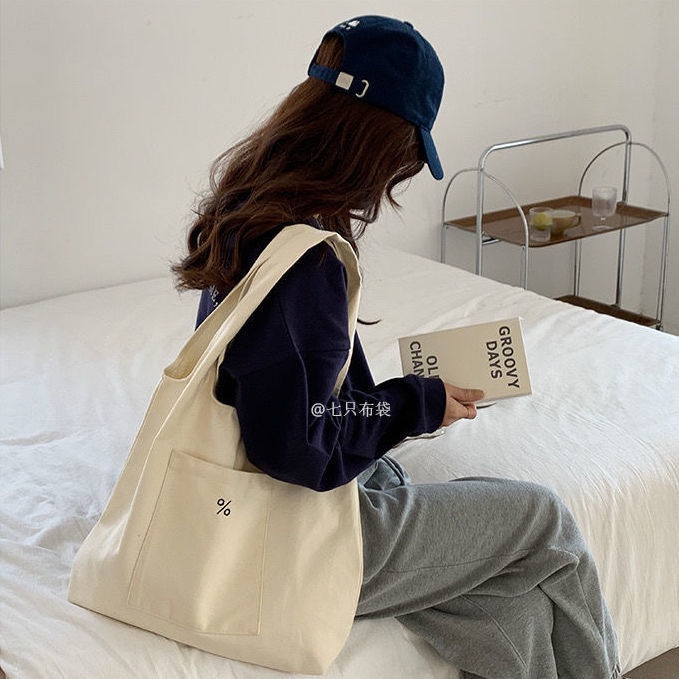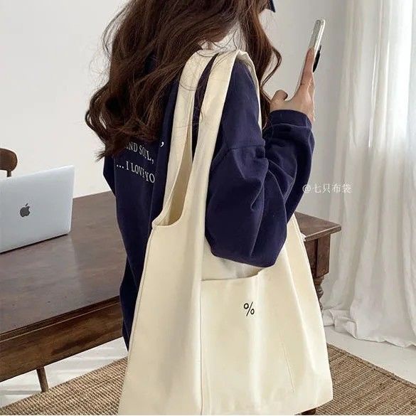 READY STOCK Canvas Tote Bag Ins Female Student Shoulder Bag Handbag 帆布包托特包女学生 Beg Kanvas Wanita Pelajar Perempuan