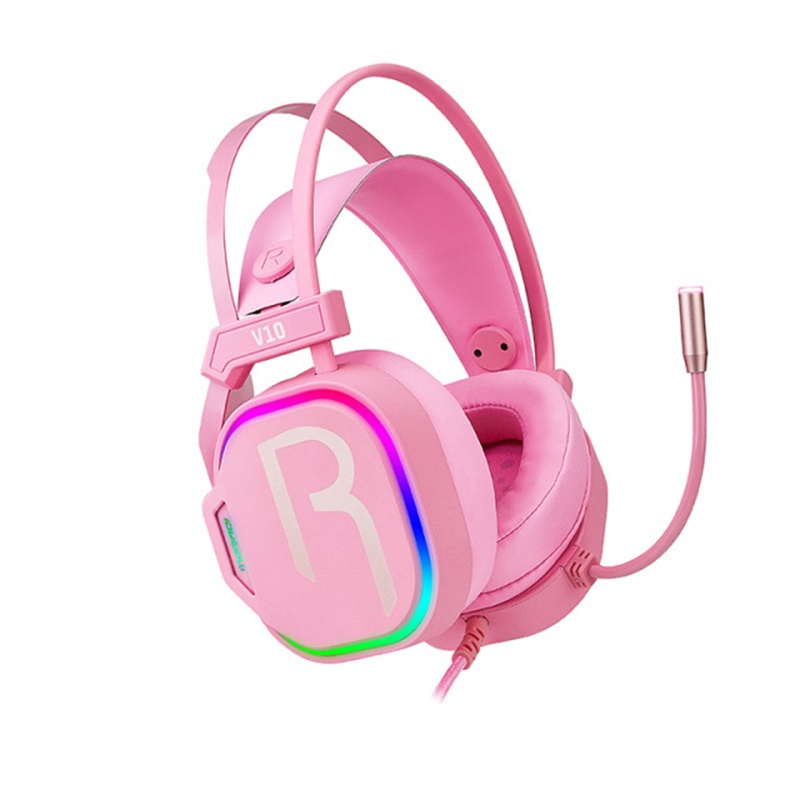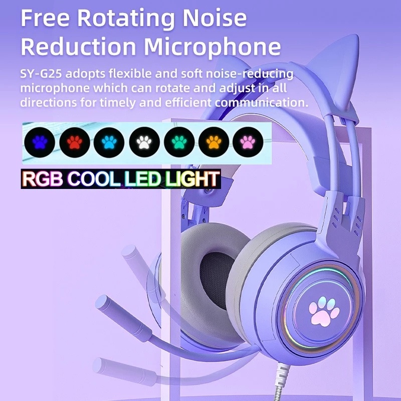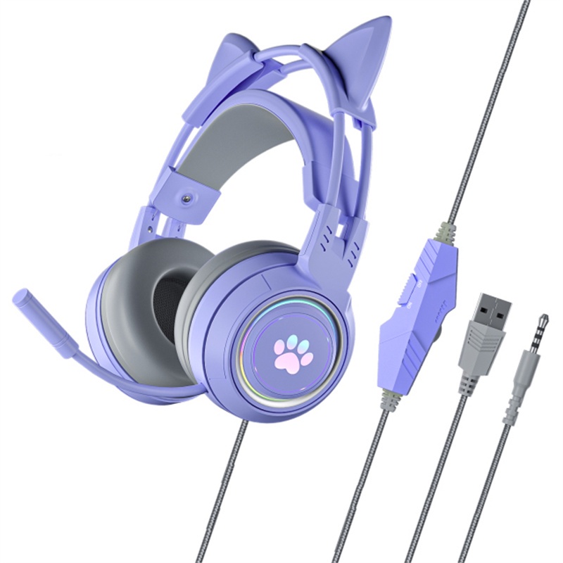 【Ready Stock】HiFi Stereo PC Cat ear Headphones with Microphone RGB LED Pink Girls Gaming Headset Gamer Accessories for PS4 Laptop Phone Gift