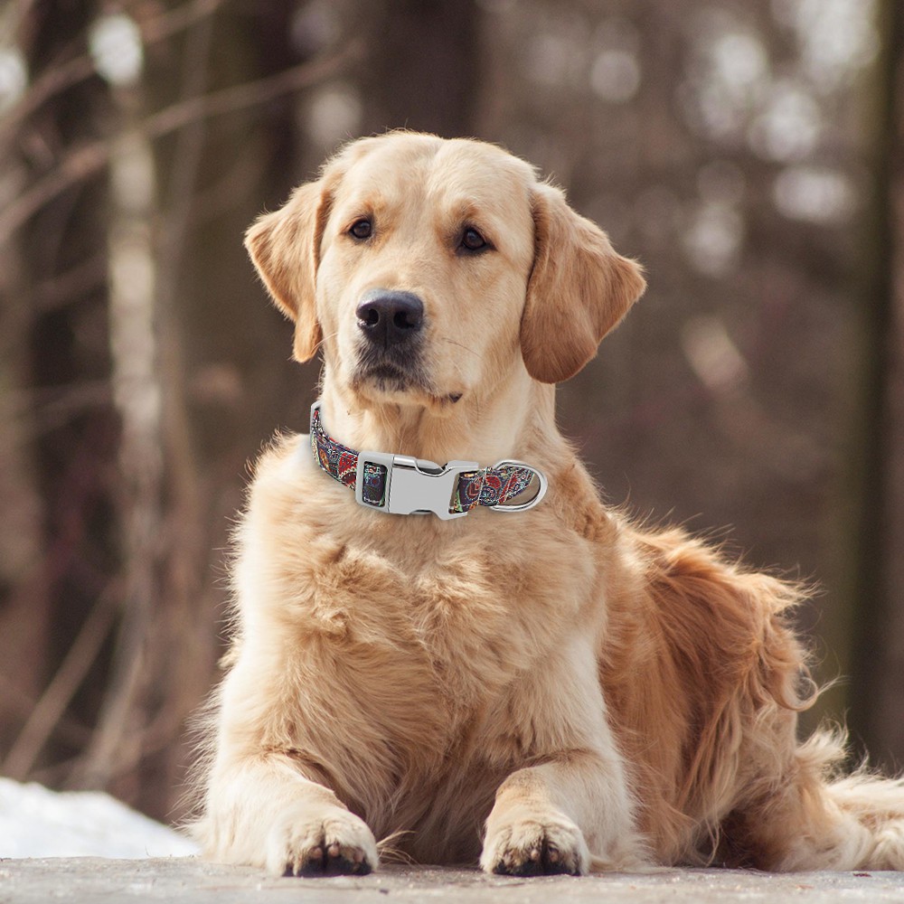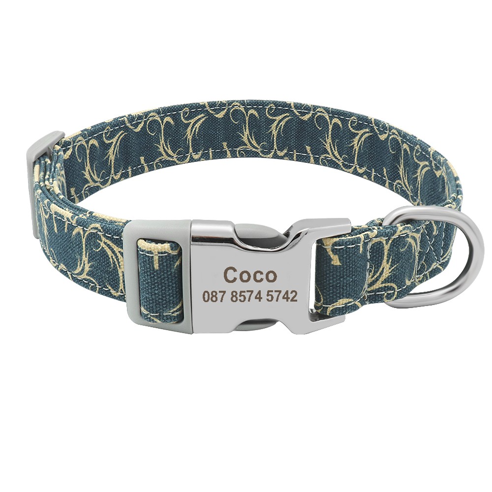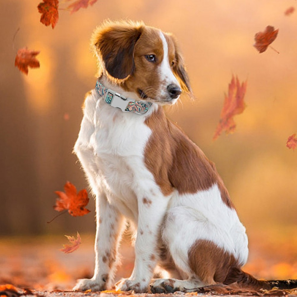 【Ready Stock】Personalised Dog Collar Flower Stripes Pet ID Name Engraved Free for Small Large Breeds Free Engraving