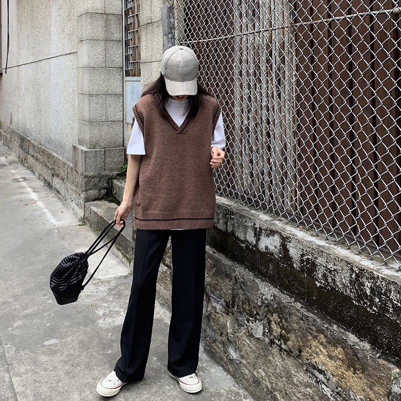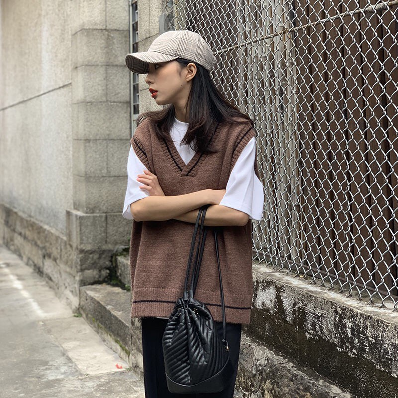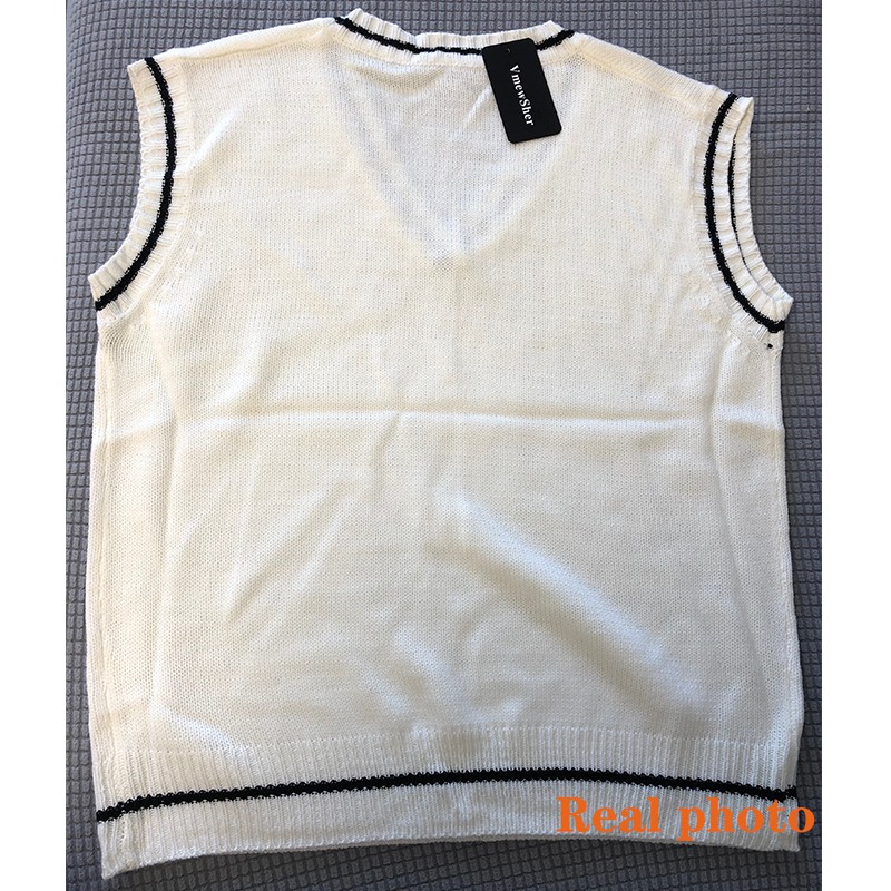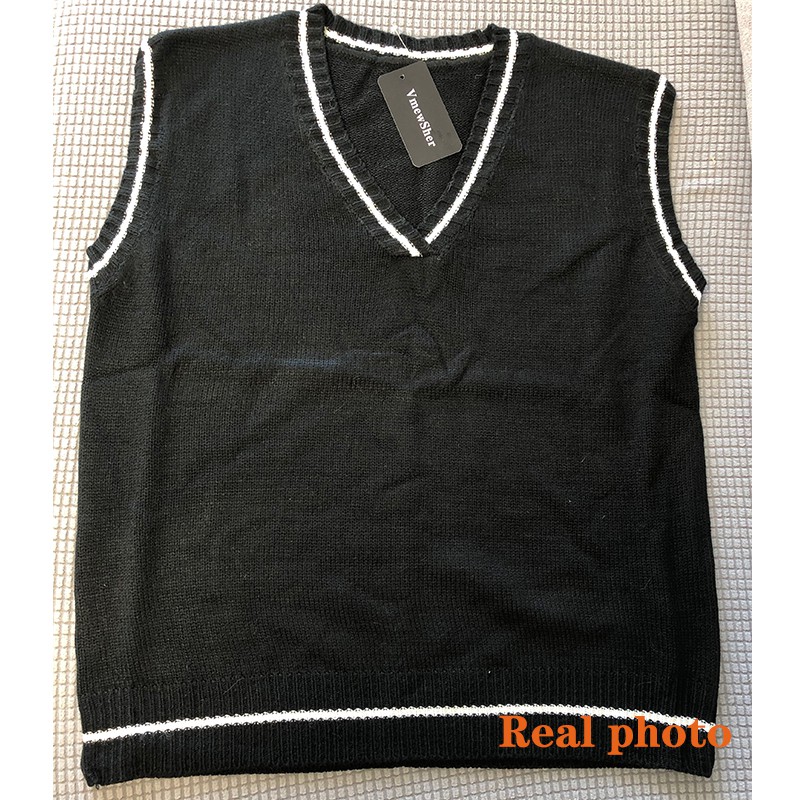 【Ready Stock】VmewSher Women Vest Simple All-match Patchwork Korean Style V-neck Knitted Sweater Leisure Student Sleeveless Female Vintage Vest