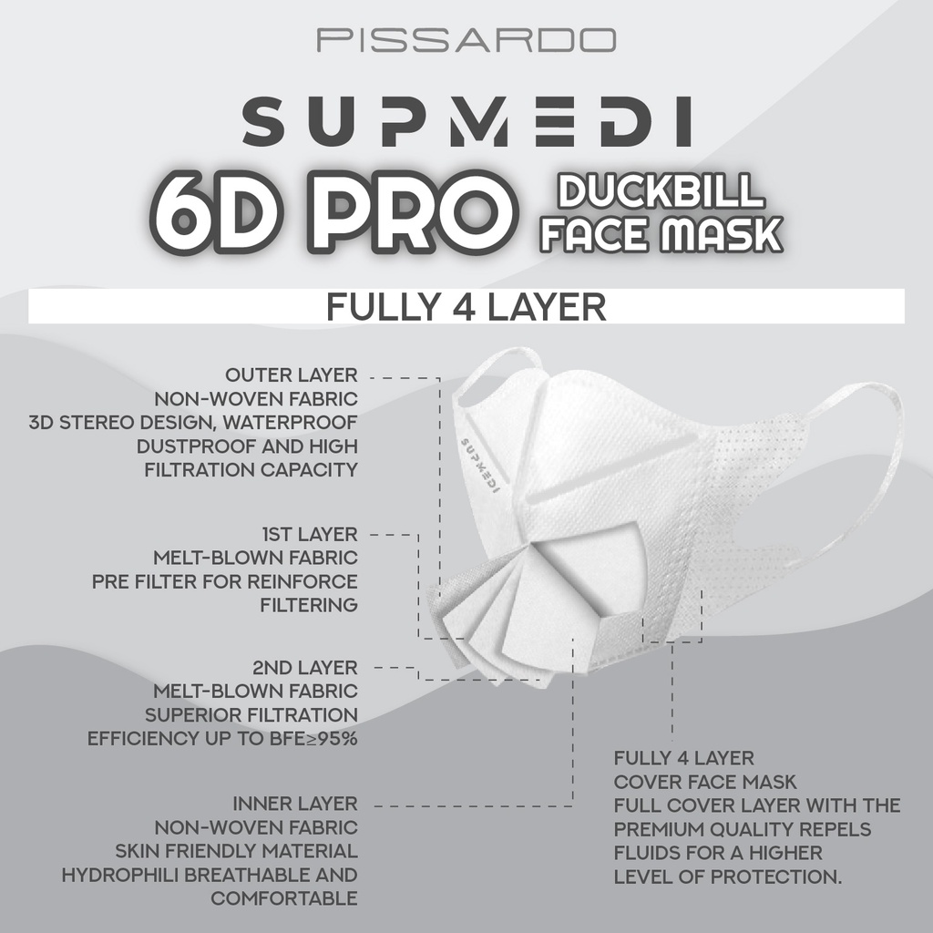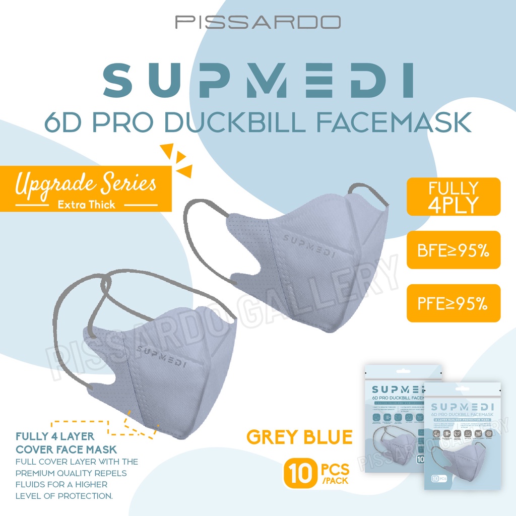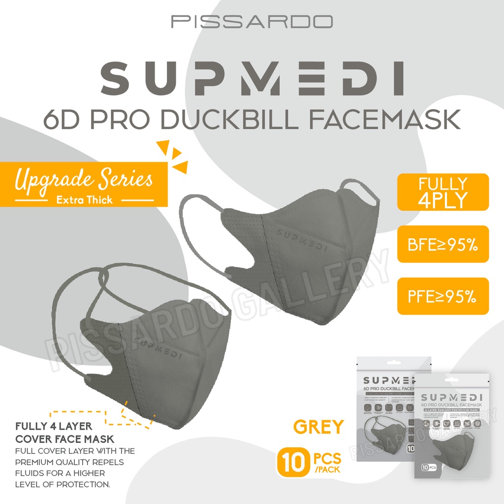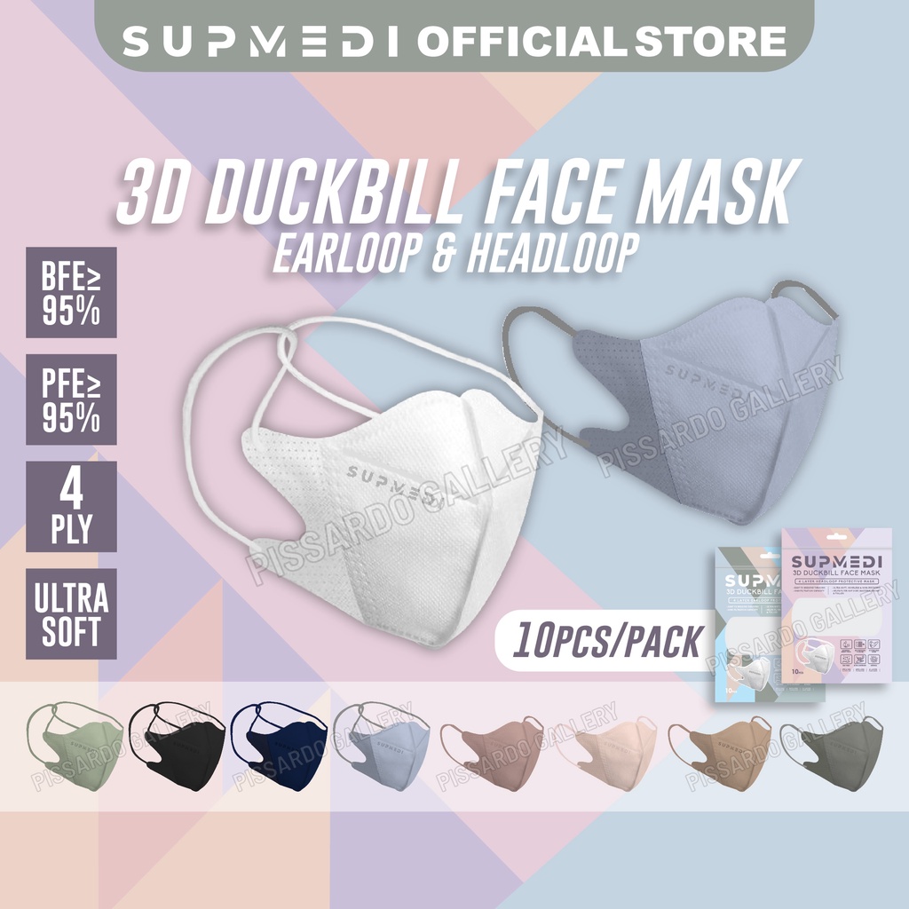 【SUPMEDI 6D PRO DUCKBILL MASK HEADLOOP & EARLOOP】10pcs/Pack 4Ply Adult Duckbill Non-Medical Face Mask Hijab Pelitup Muka