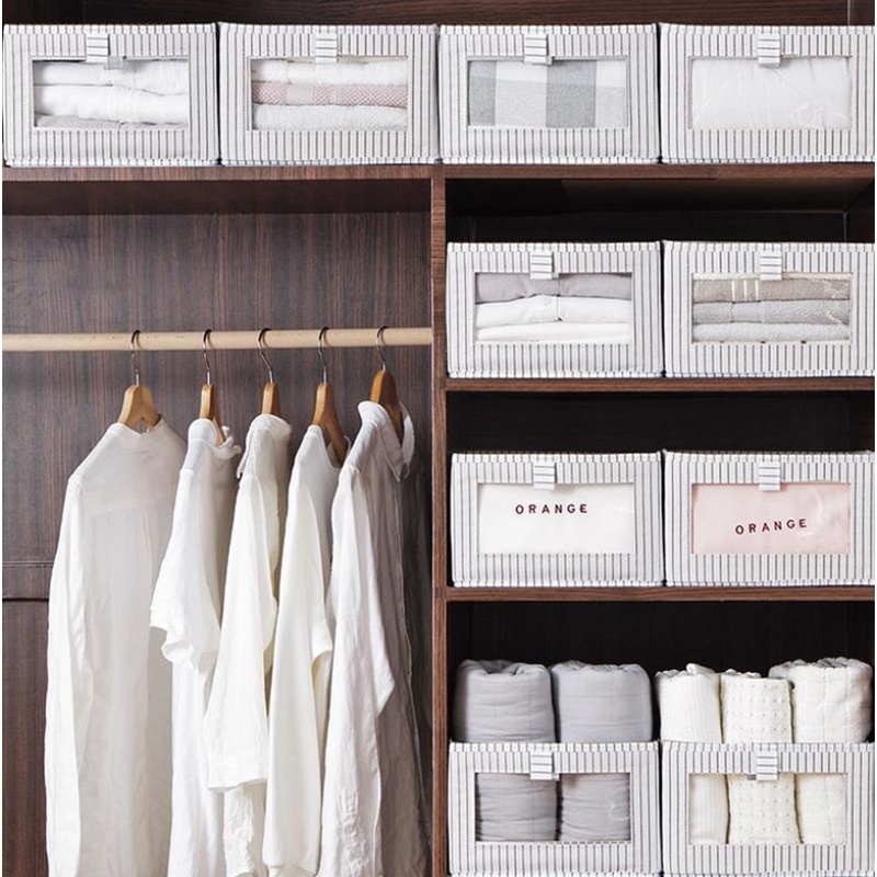 【ShopWithJoy】 Korean Storage Box Foldable Wardrobe Linen Storage Box Clothes Organizer Basket Underwear Cloth Storage