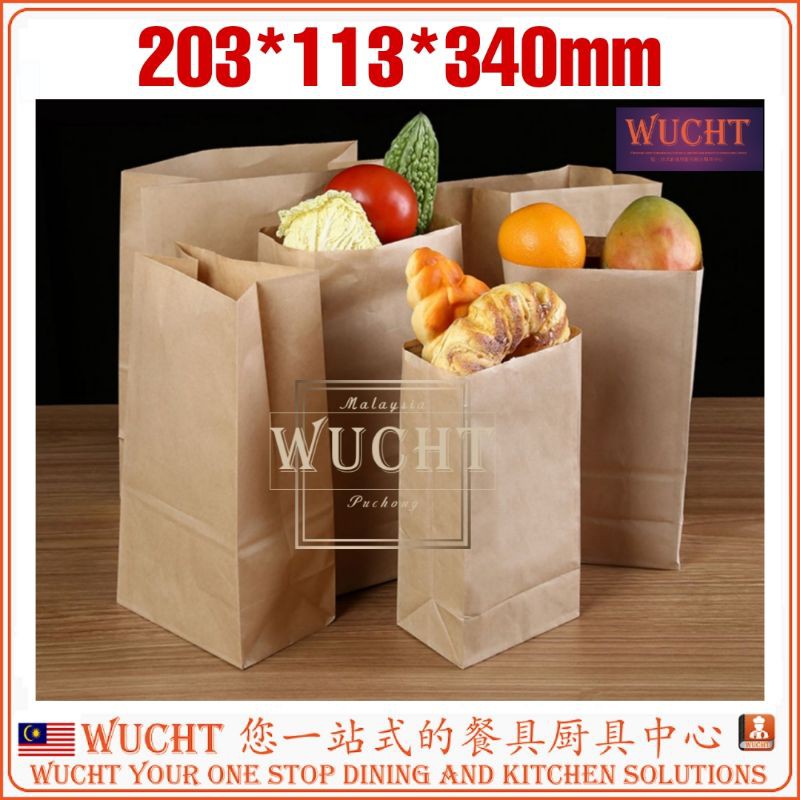 【WUCHT】Brown Paper Bag Kraft Food Bags Packaging Paper Bread Loaf Bakery Bag Lunch Bags Durable Kraft Paper Bag