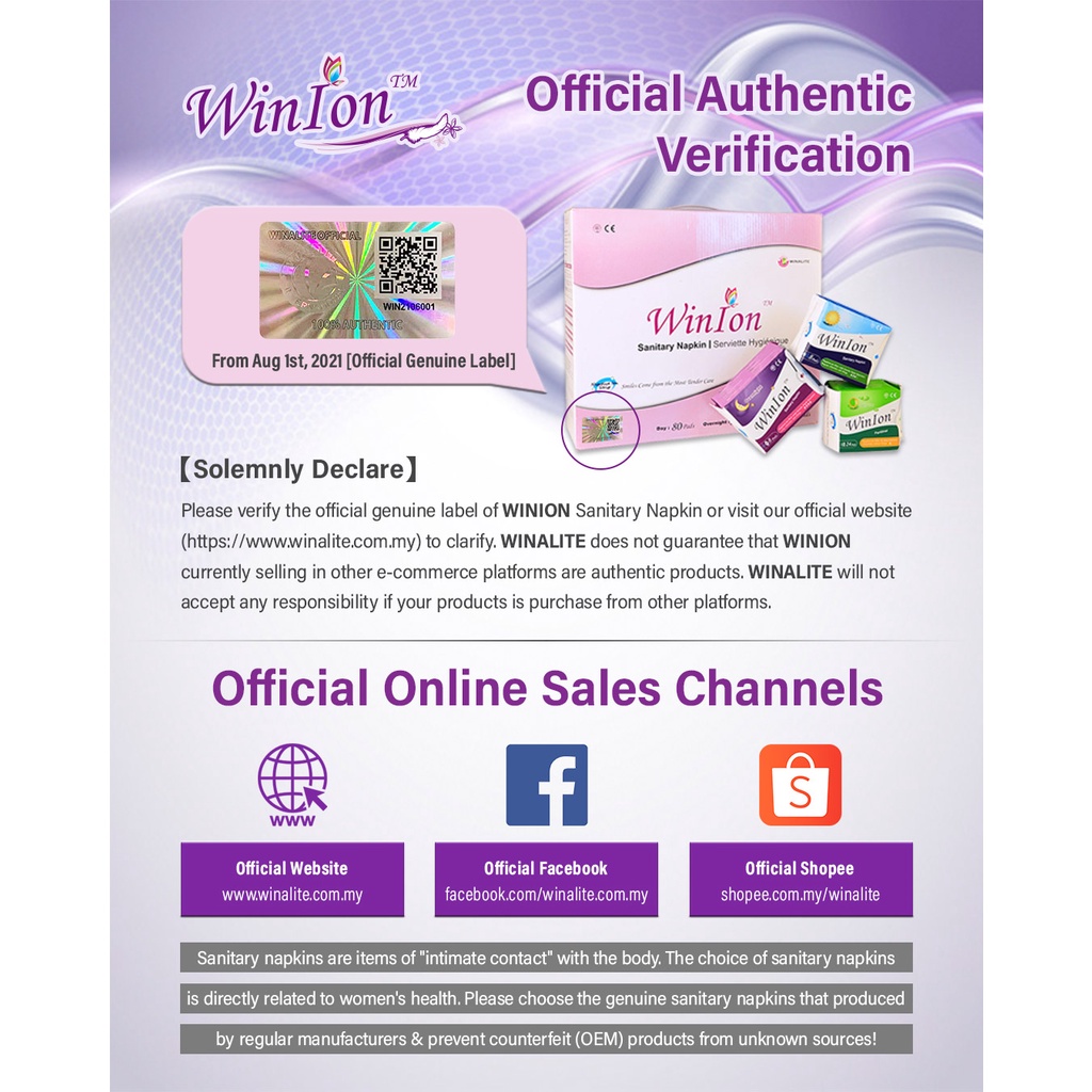 【Winion Monthly Set】Winalite Winion Sanitary Napkin (Day Use, Night Use, Pantiliner) - 5 Packs