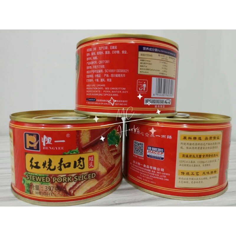 恒一红烧扣肉 Heng Yee Stewed Pork Sliced 397g