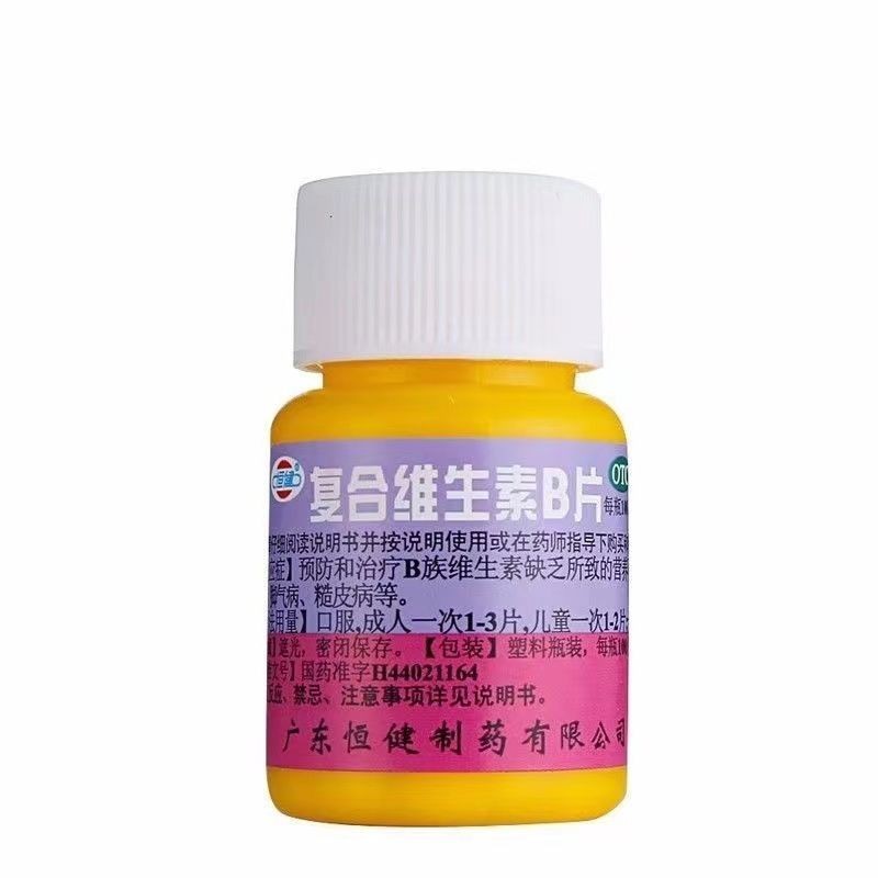 恒健 复合维生素B片100片B族维生素缺乏所致的营养不良、糙皮病yHengjian Compound Vitamin B Tablets 100 Tablets B