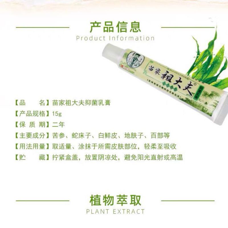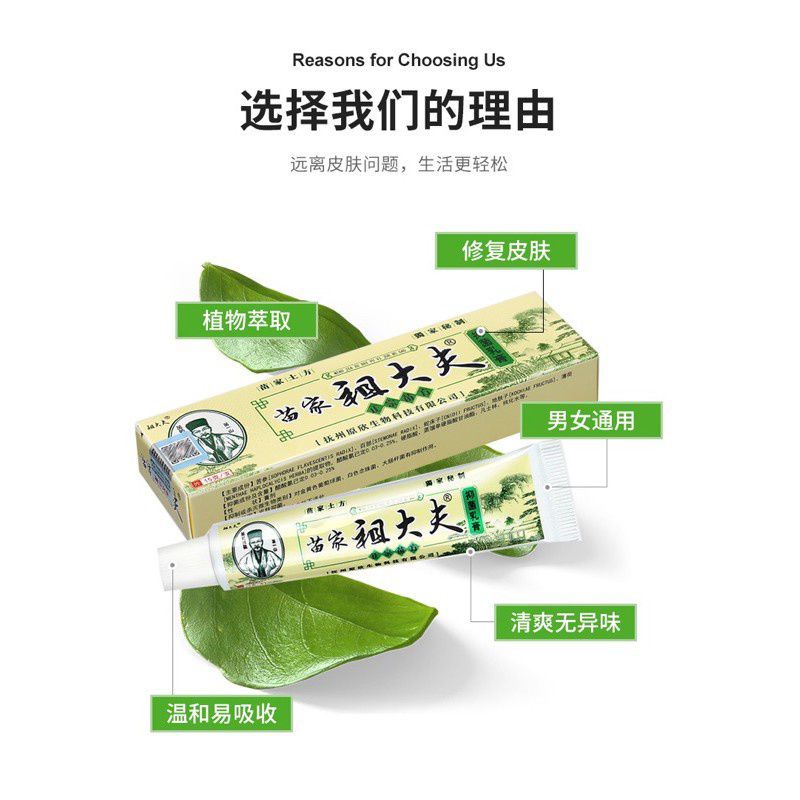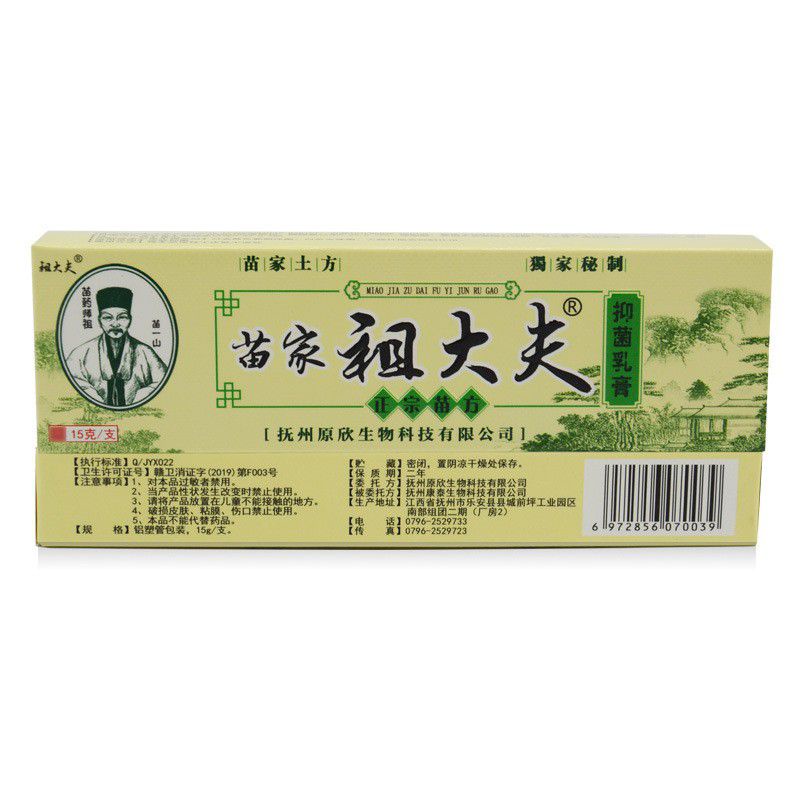 苗家 祖大夫 ZUDAIFU Natural Chinese Herbs Cream for Eczema Dermatitis Psoriasis Skin Disease 15g 草本抑菌乳膏 止痒膏 皮肤抗菌乳膏