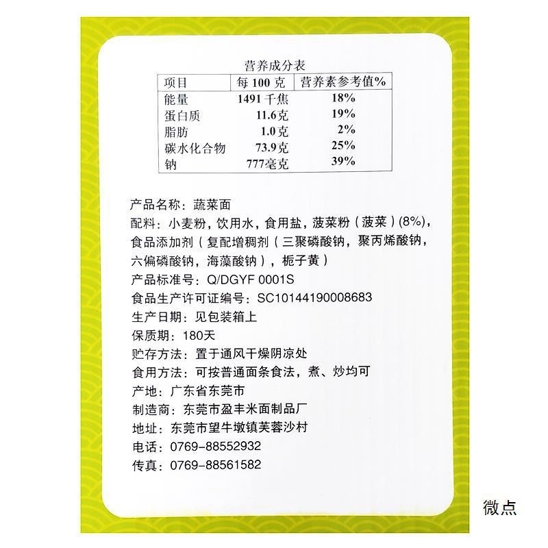 蔬菜面 7 片 Vegetables Noodles 7 pieces Green Mee Sayur