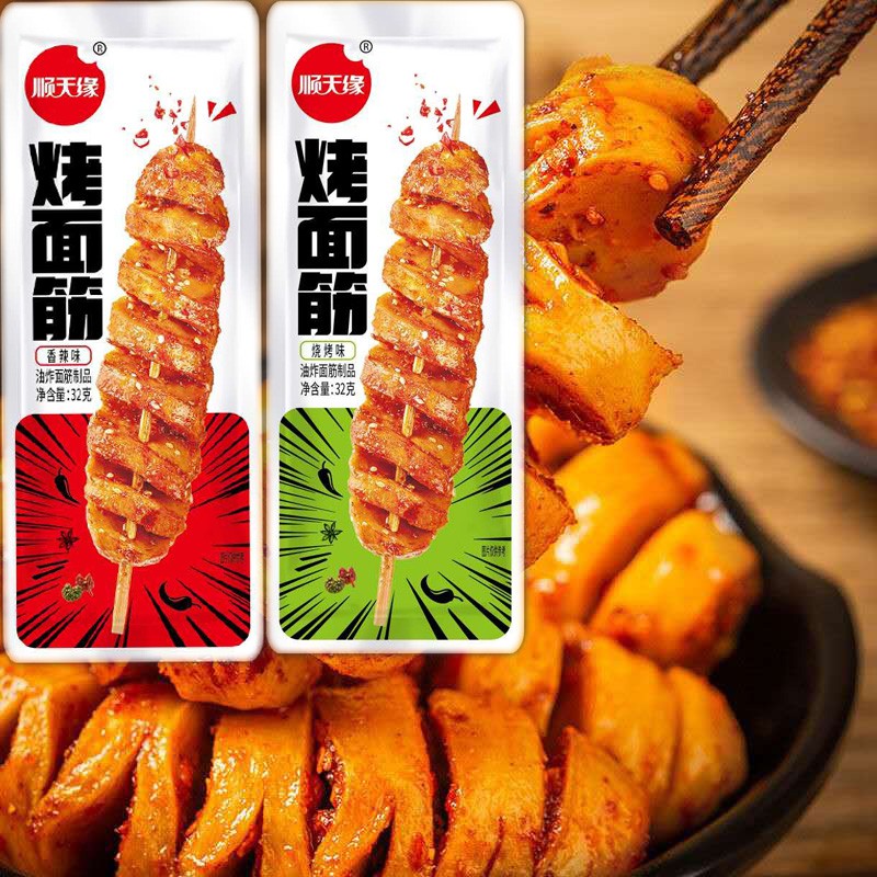 顺天缘烤面筋休闲零食辣条烤面筋手撕面筋香辣/烧烤味零食28g ShunTianYuan KaoMianJin Spicy/BBQ Flavor 28g
