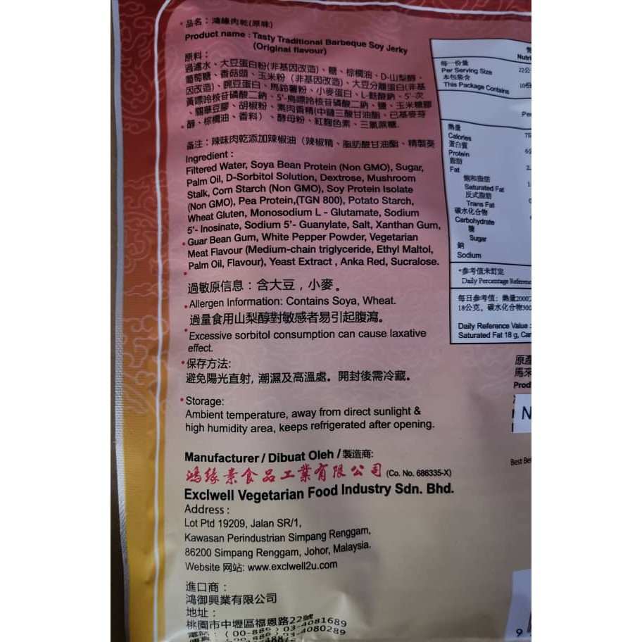 鸿缘肉干 素肉干 bak kua Vegetarian Barbecue Soy Jerky 180g