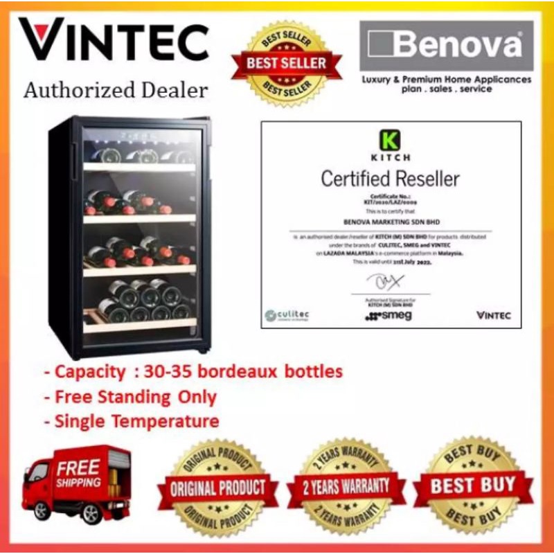 (Fast Ship) VINTEC Freestanding Wine Chiller VWS035SCA-X (30-35 bordeaux)