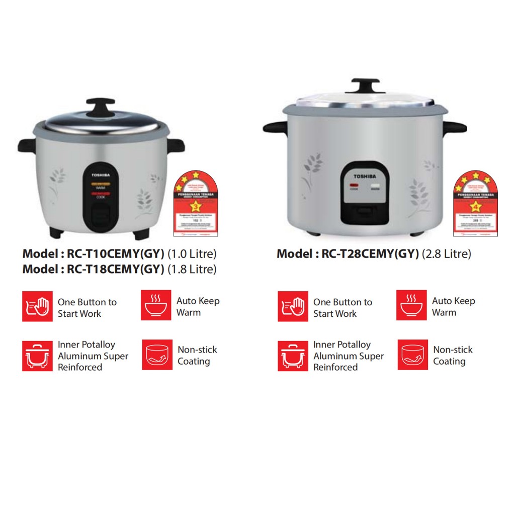 Toshiba 1.0L-1.8L-2.8L Rice Cooker RC-T28CEMY / RC-T18CEMY / RC-T10CEMY Conventional Rice Cooker