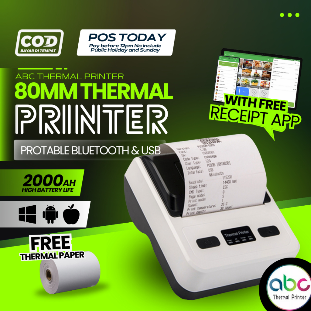 80MPT - 𝗙𝗥𝗘𝗘POS!! 80mm Thermal Printer * GOOJPRT 3"Inch Portable * Bluetooth Receipt Printer * SRS *