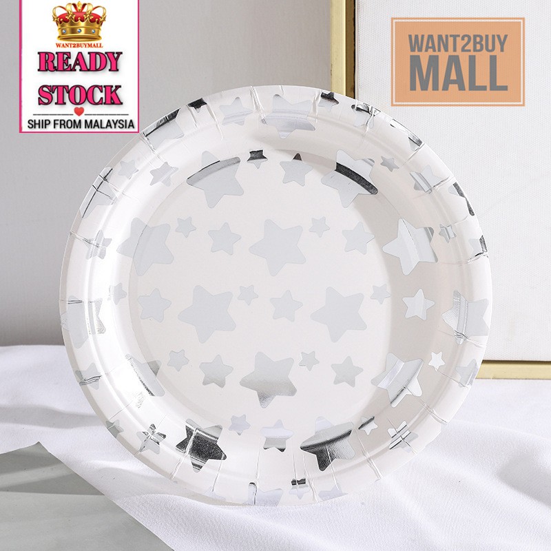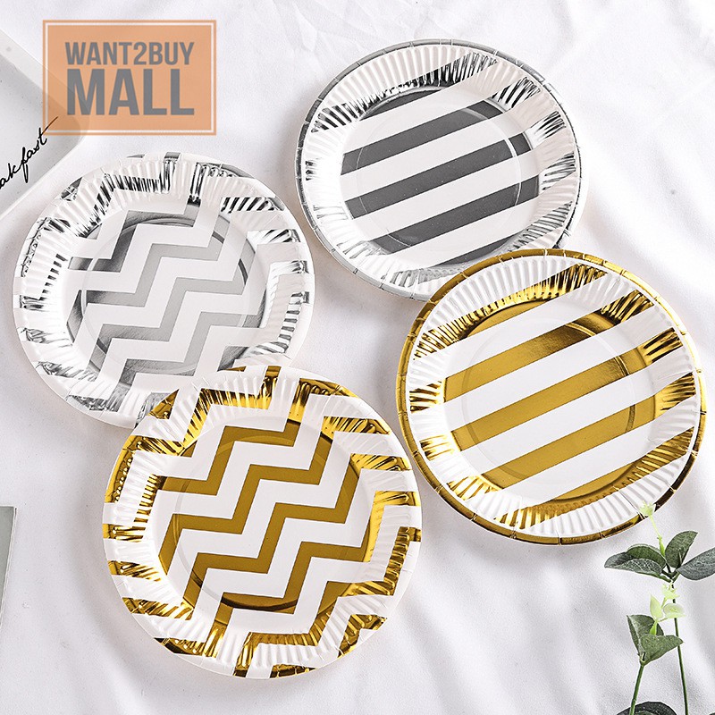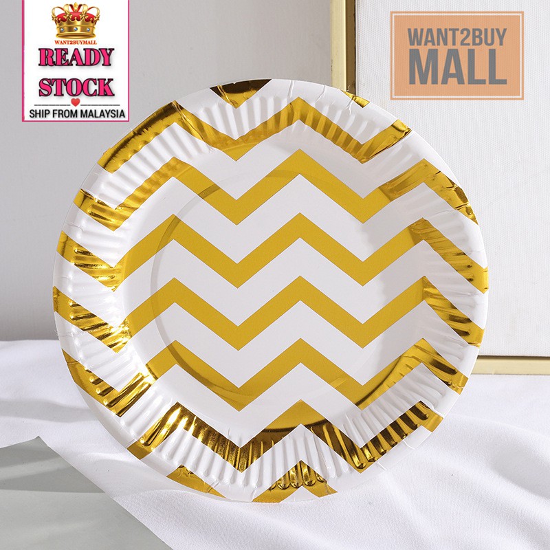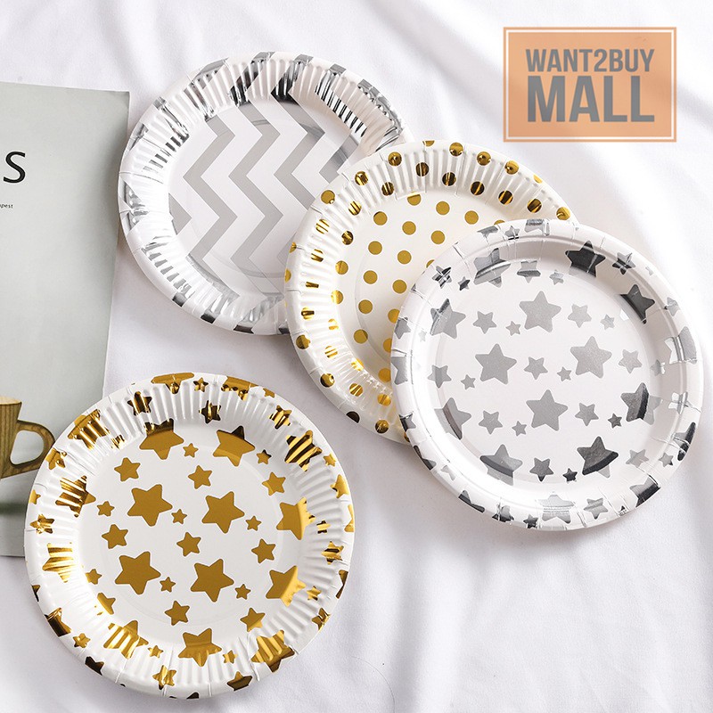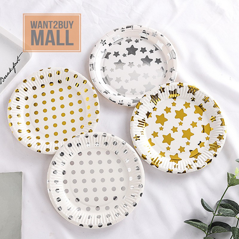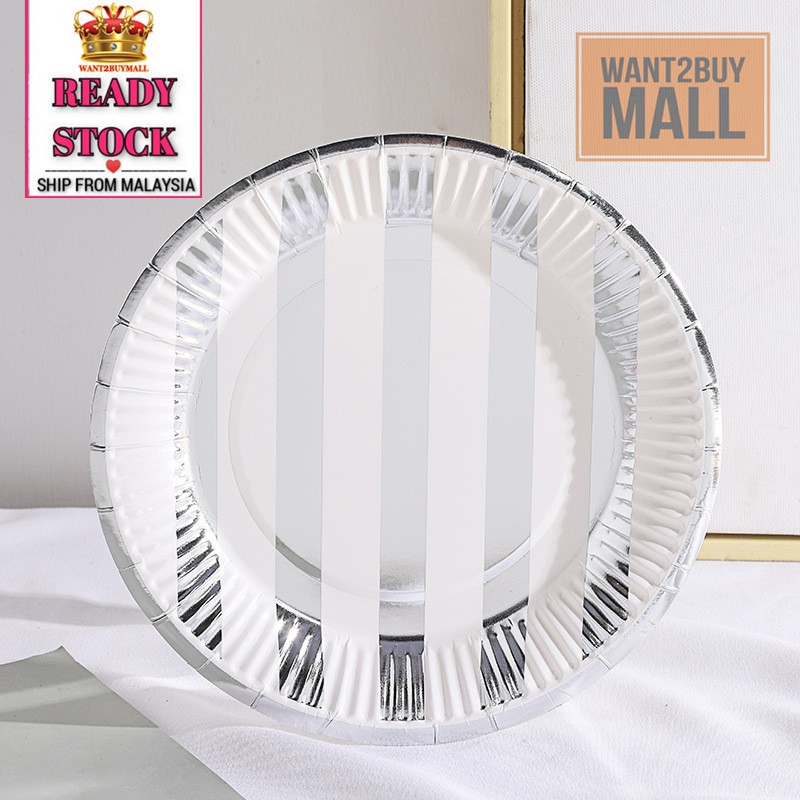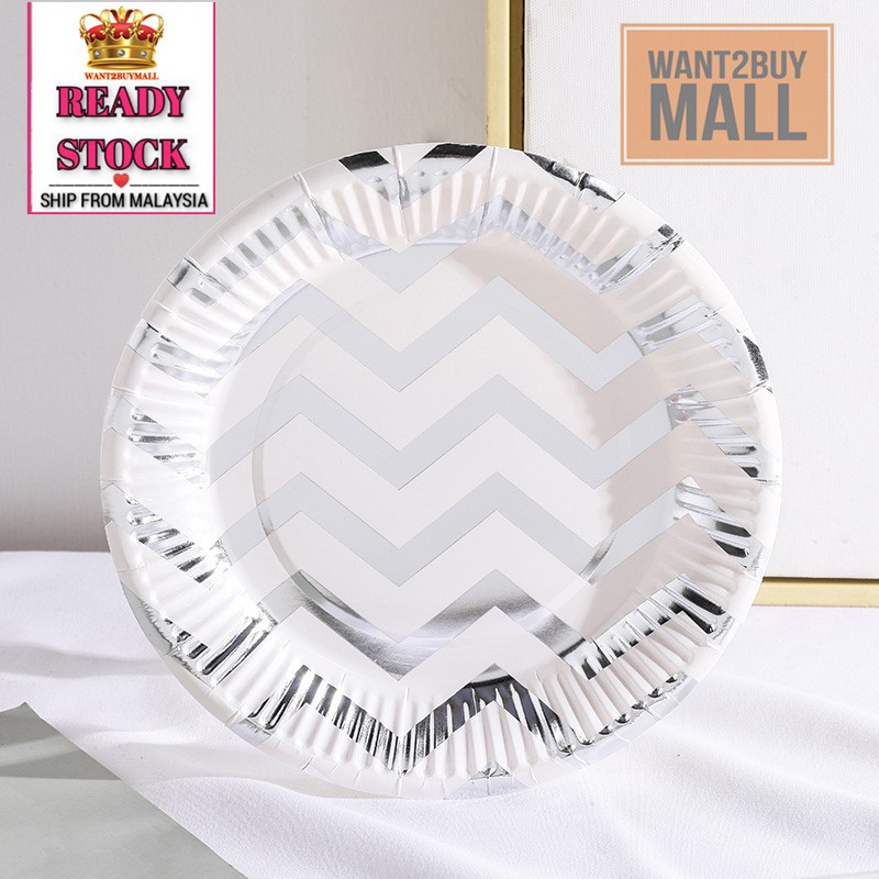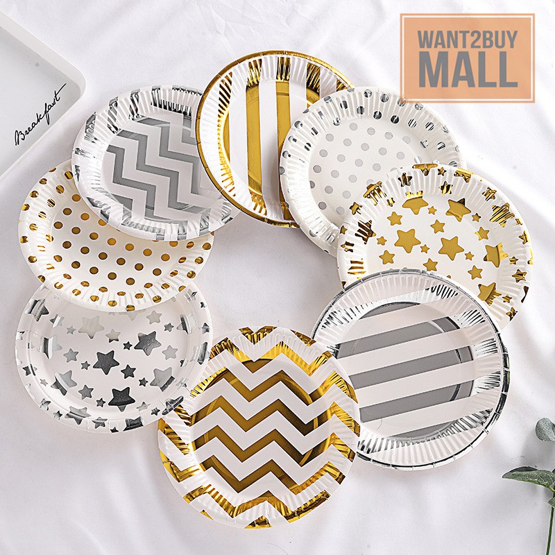 🇲🇾 10pcs/Set Birthday Kids Baby Event Party Gold Silver Metallic Party Decoration Disposable Paper Plate Tableware 纸盘