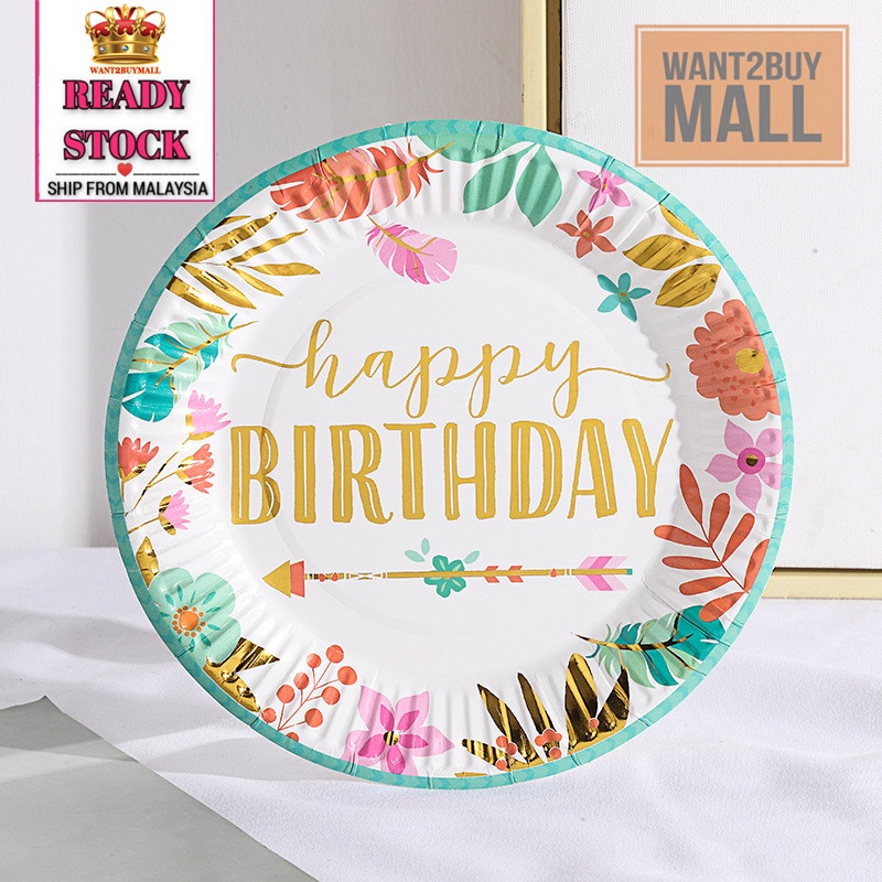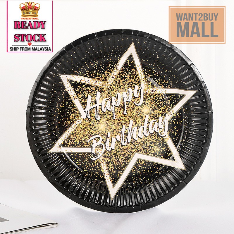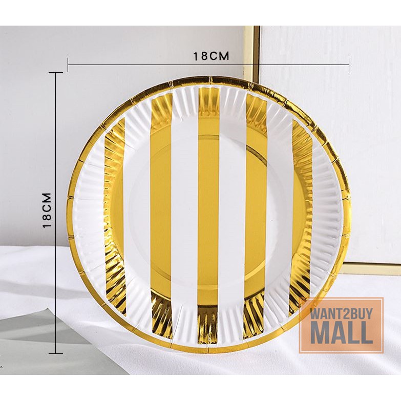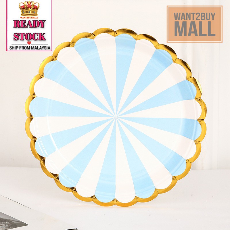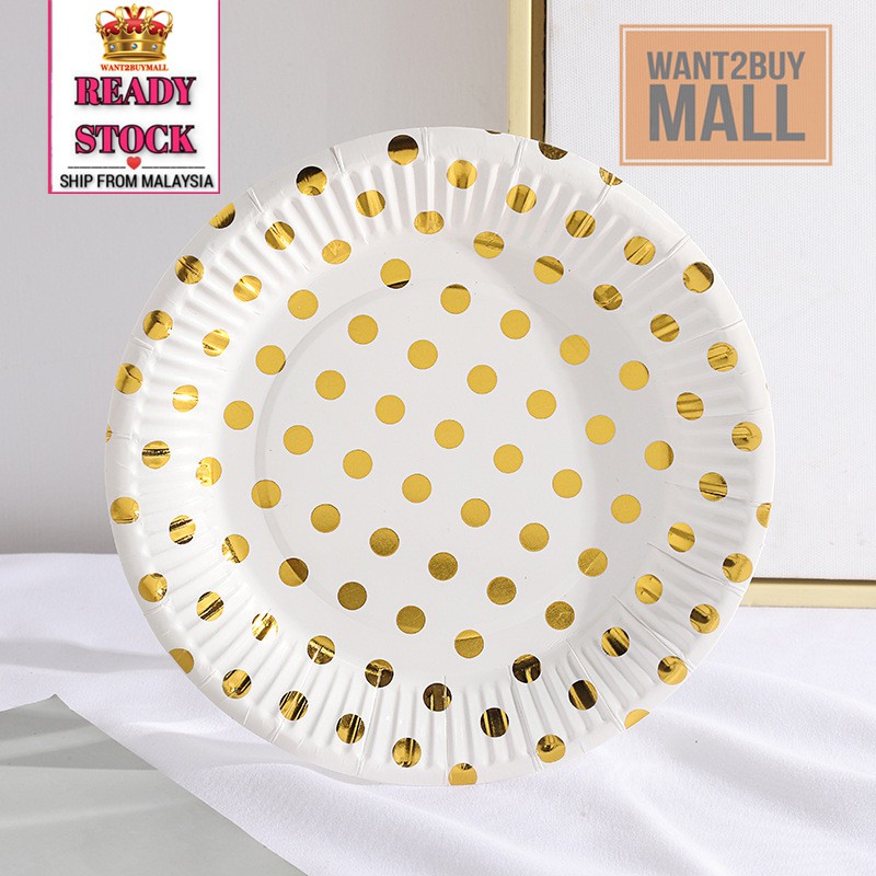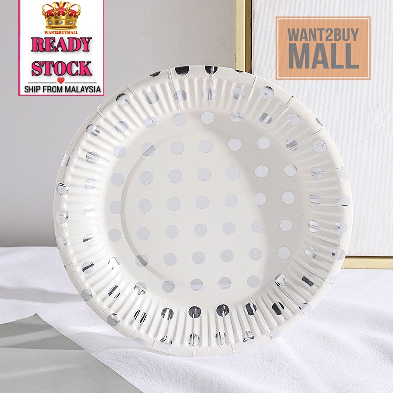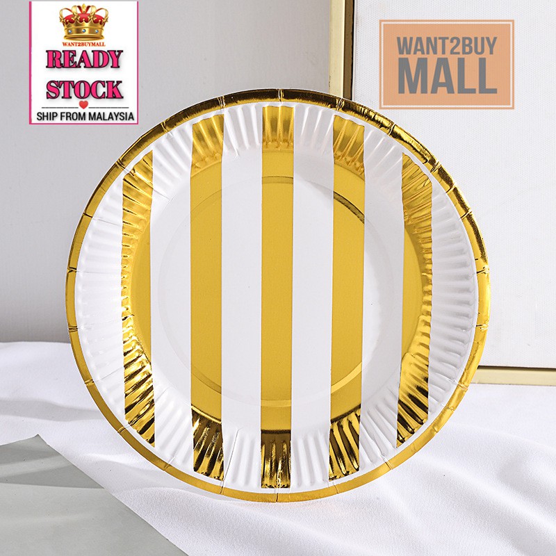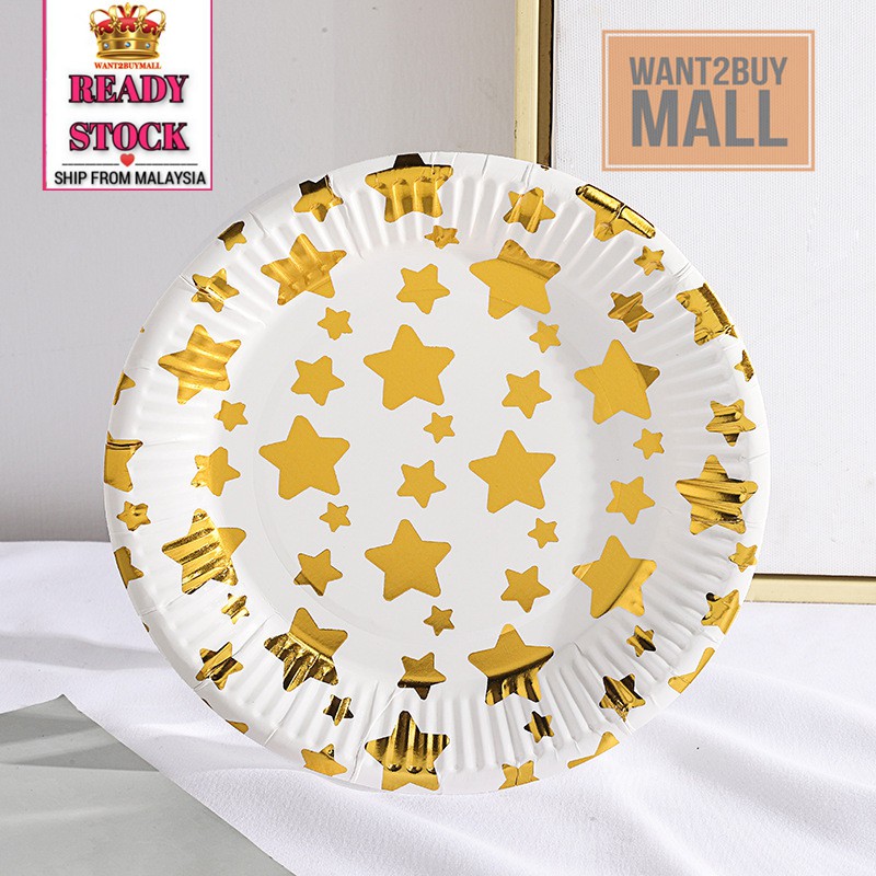 🇲🇾 10pcs/Set Birthday Kids Baby Event Party Gold Silver Metallic Party Decoration Disposable Paper Plate Tableware 纸盘