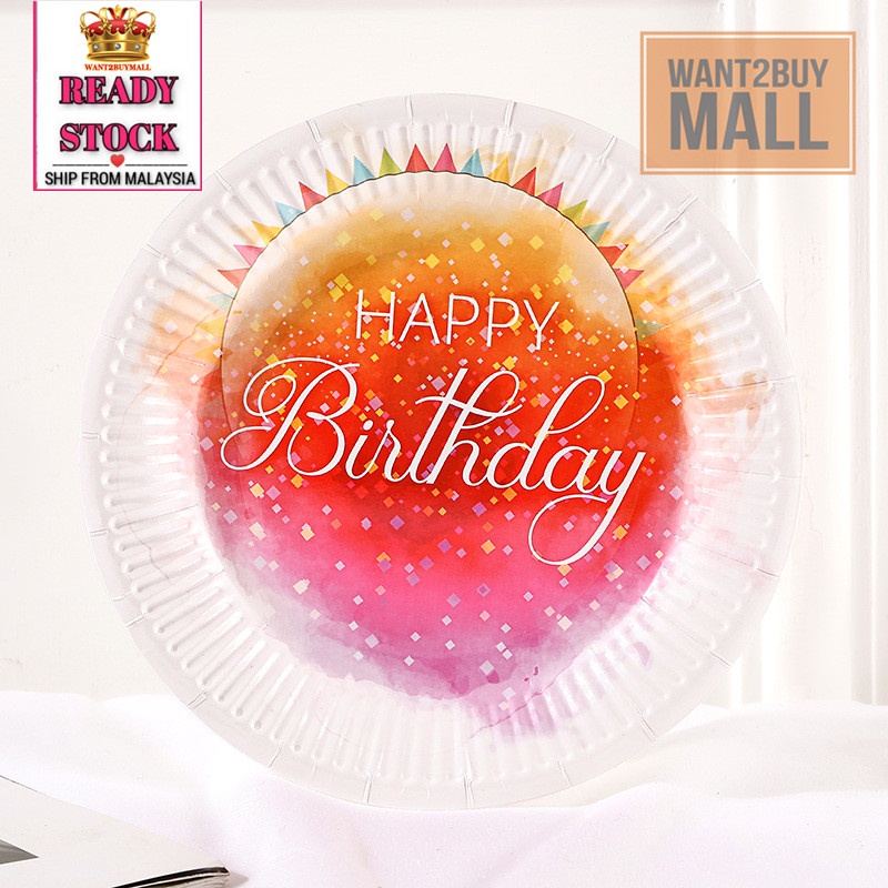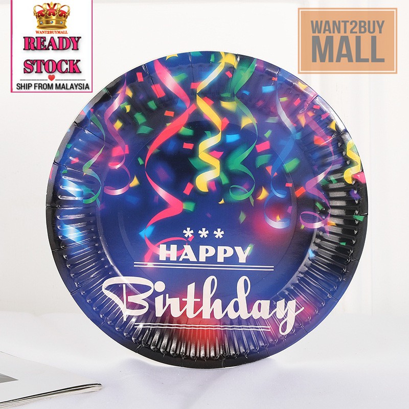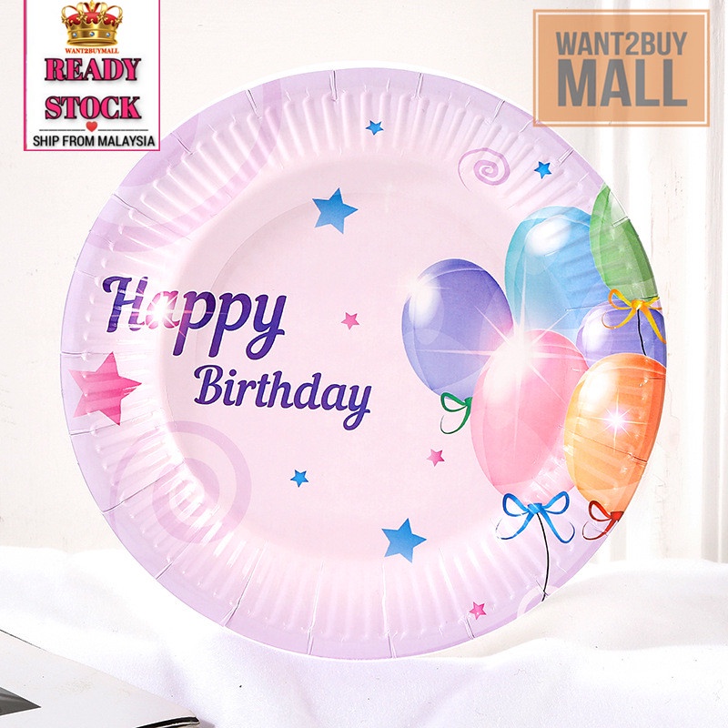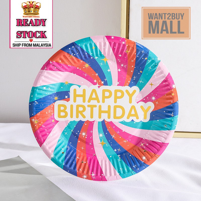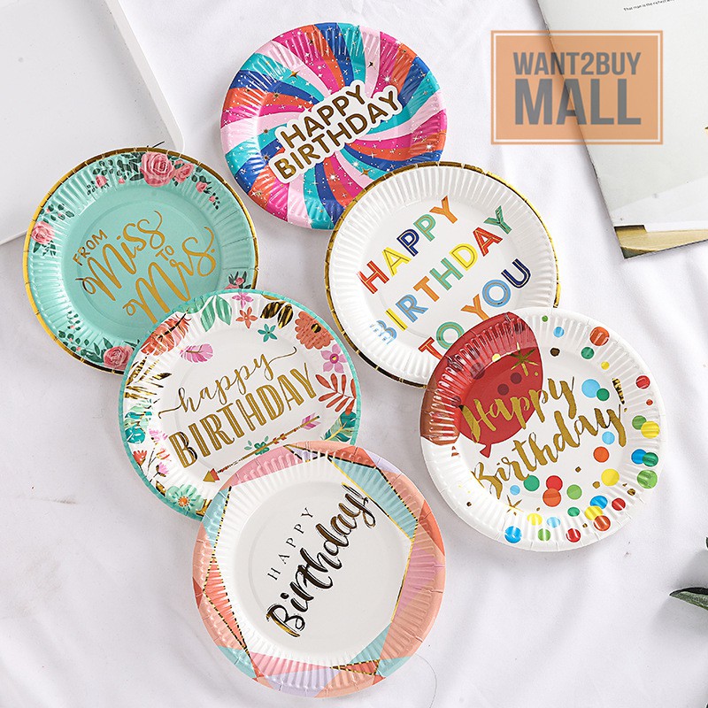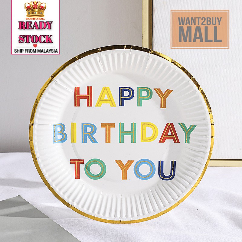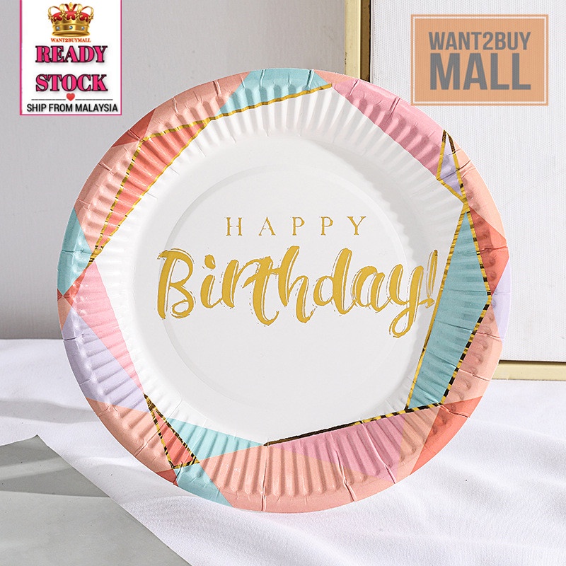 🇲🇾 10pcs/Set Birthday Kids Baby Event Party Gold Silver Metallic Party Decoration Disposable Paper Plate Tableware 纸盘