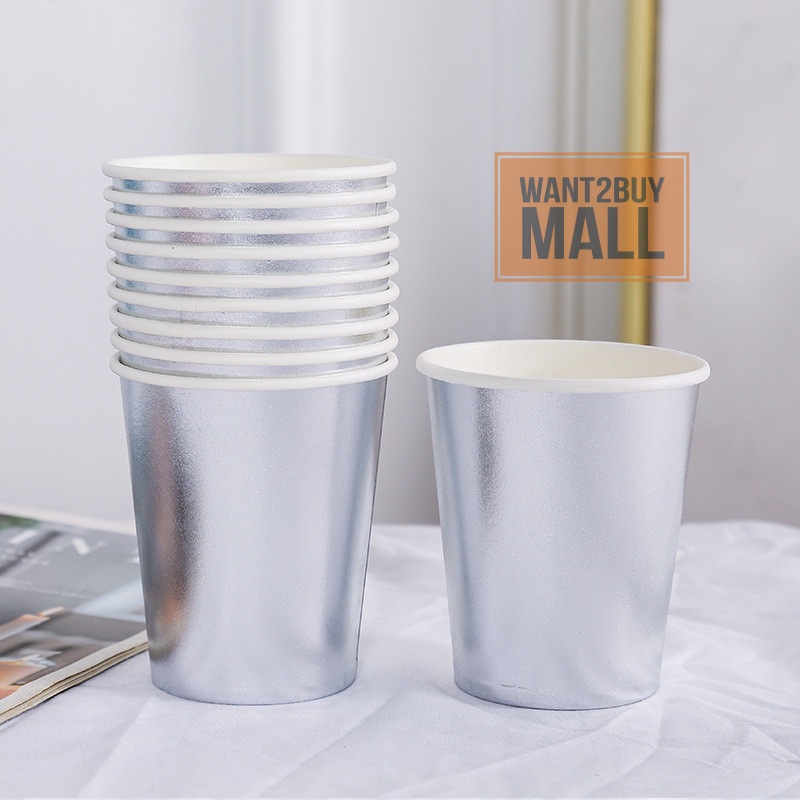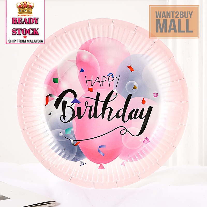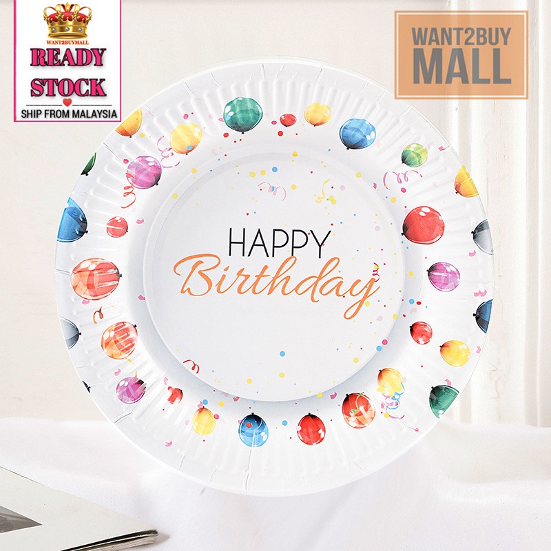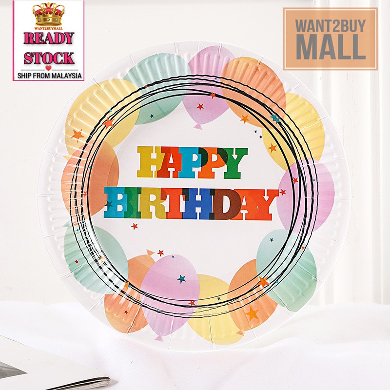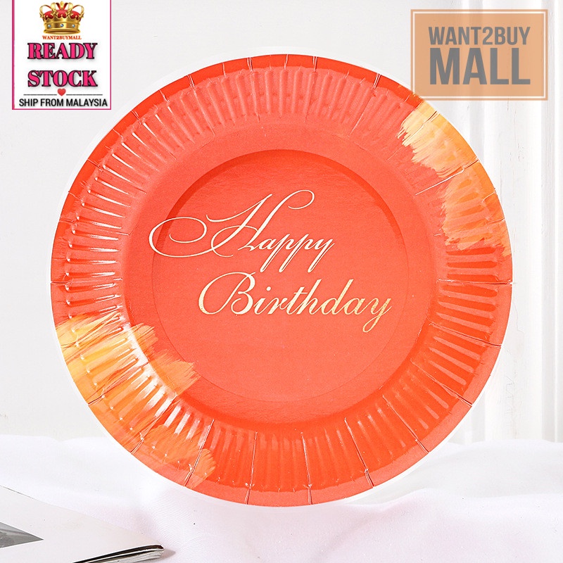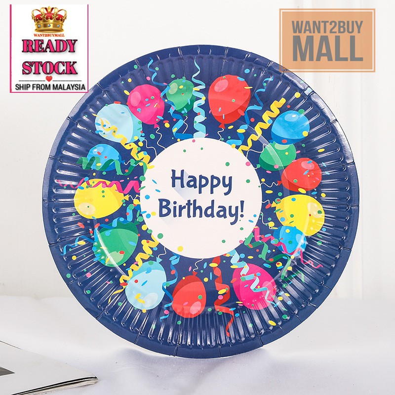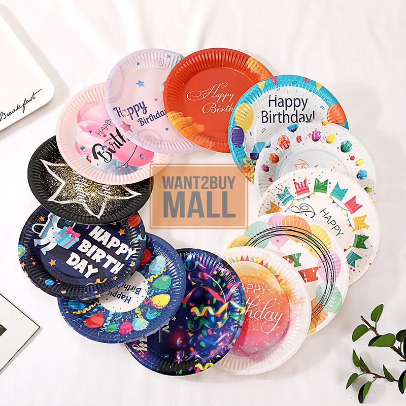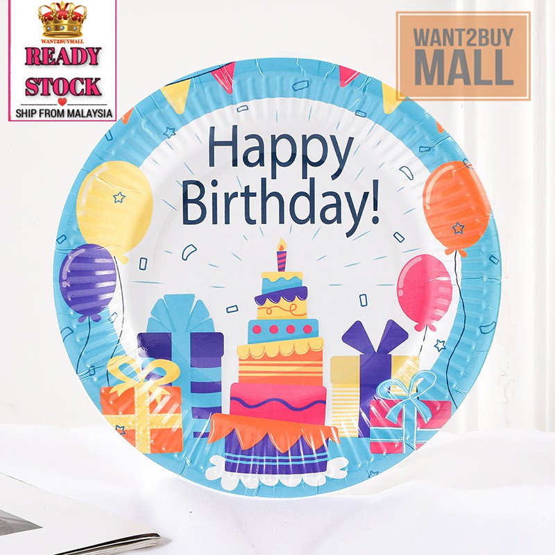 🇲🇾 10pcs/Set Birthday Kids Baby Event Party Gold Silver Metallic Party Decoration Disposable Paper Plate Tableware 纸盘