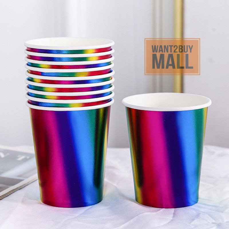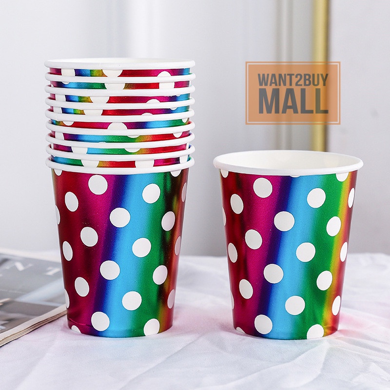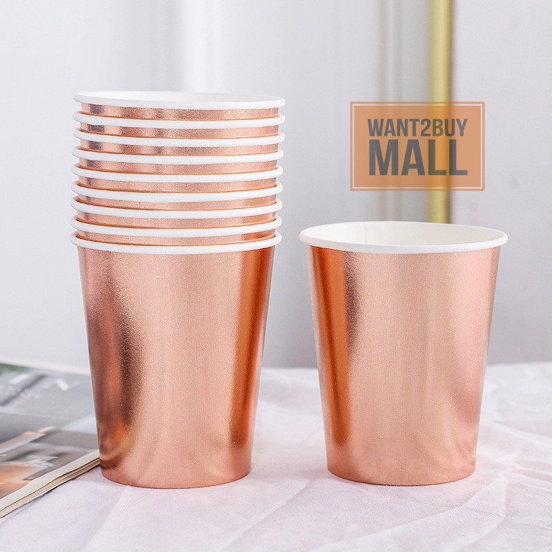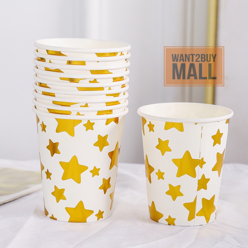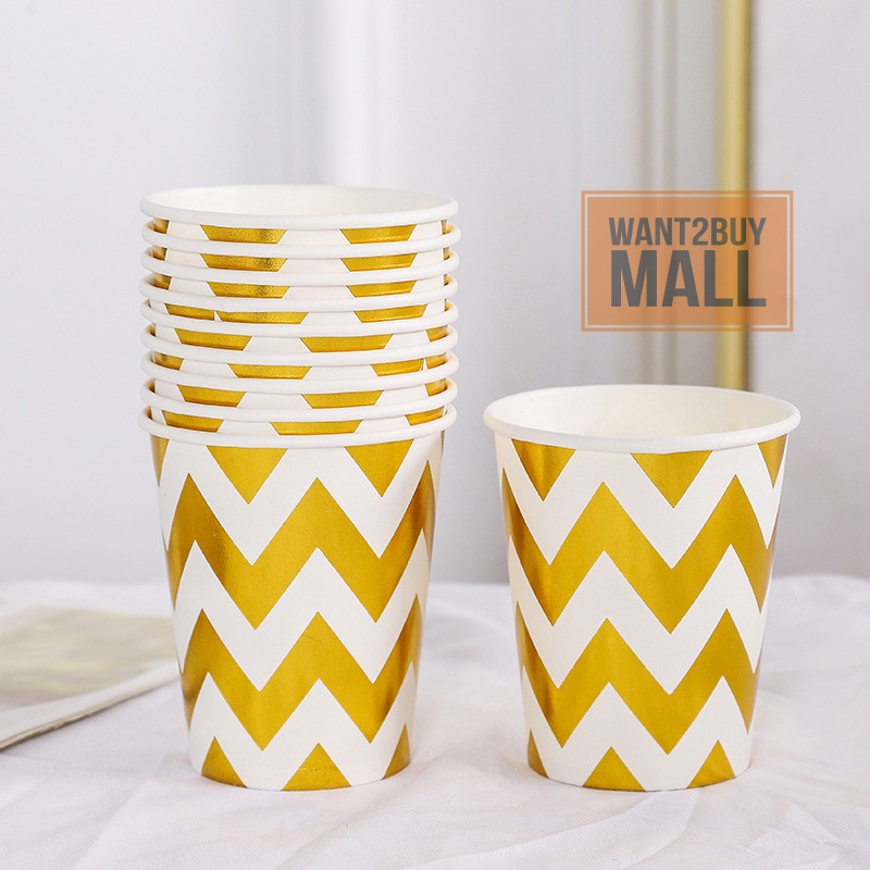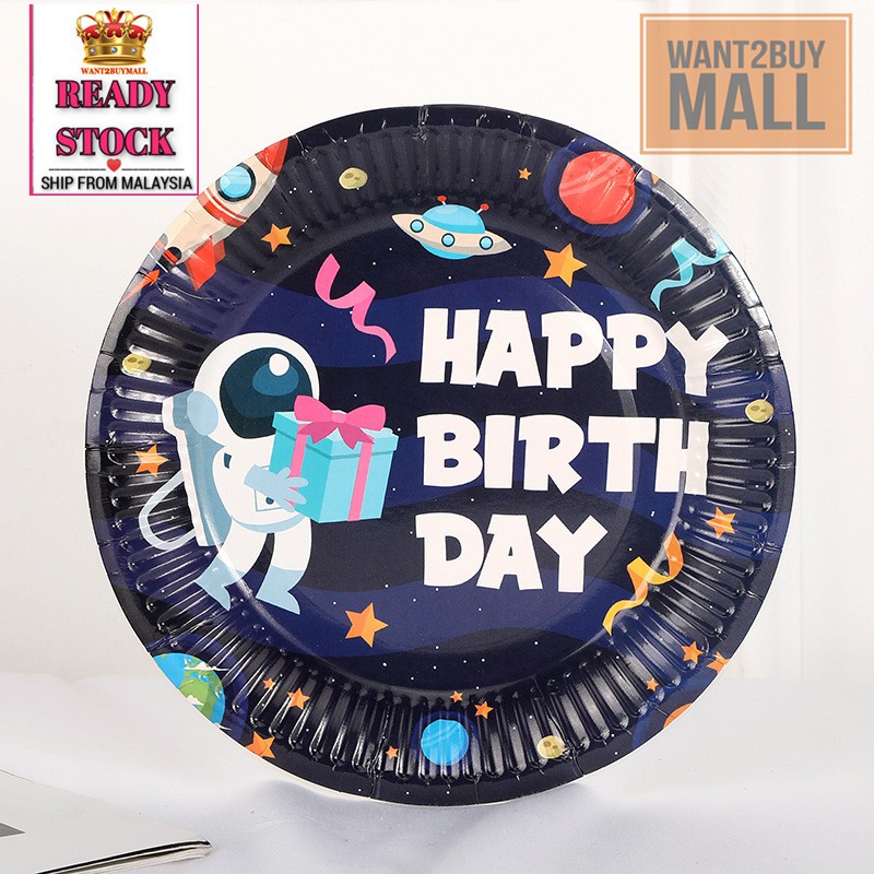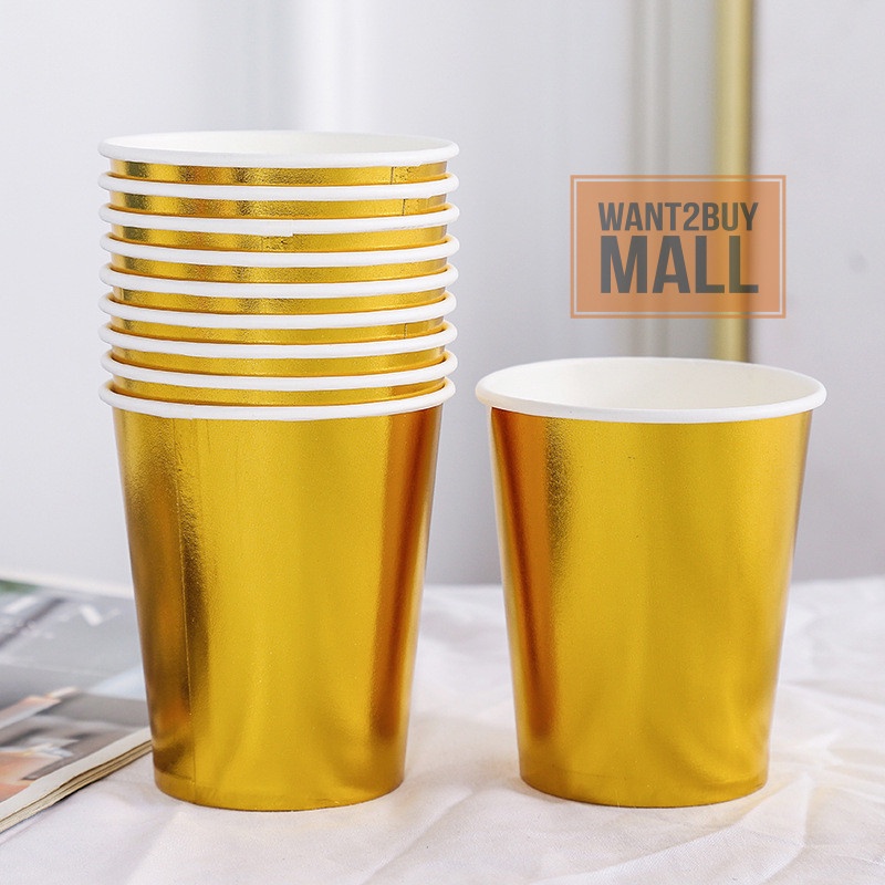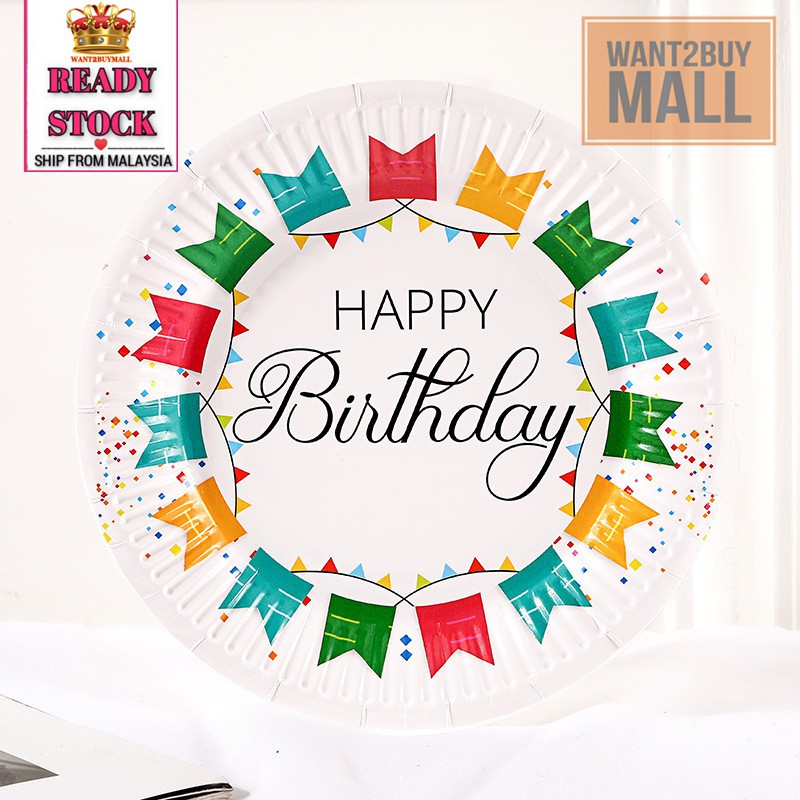 🇲🇾 10pcs/Set Birthday Kids Baby Event Party Gold Silver Metallic Party Decoration Disposable Paper Plate Tableware 纸盘