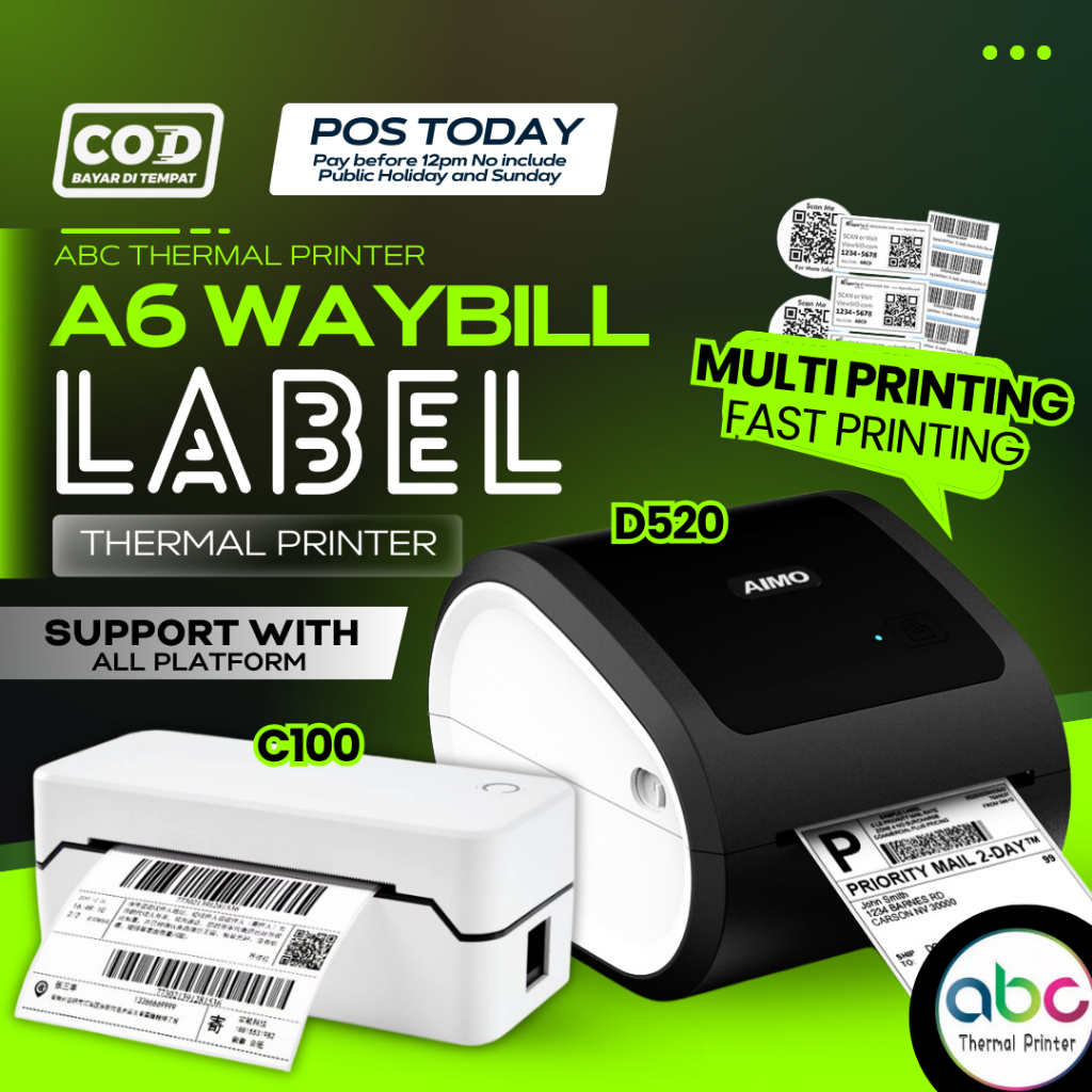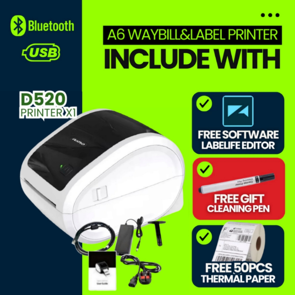 C100/D520 Waybill Printer * Thermal Printer A6 * USB+Bluetooth Android & IOS * AWB printer * shipping label * Waybill