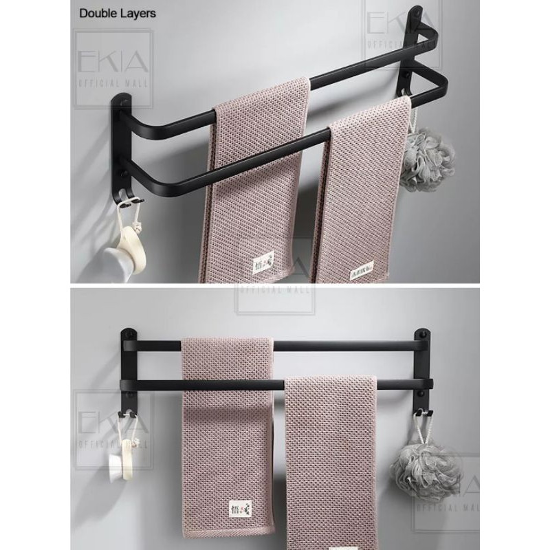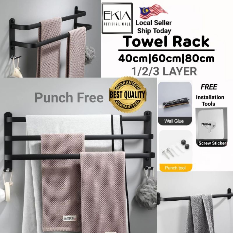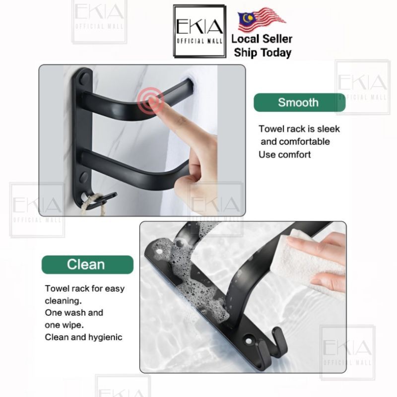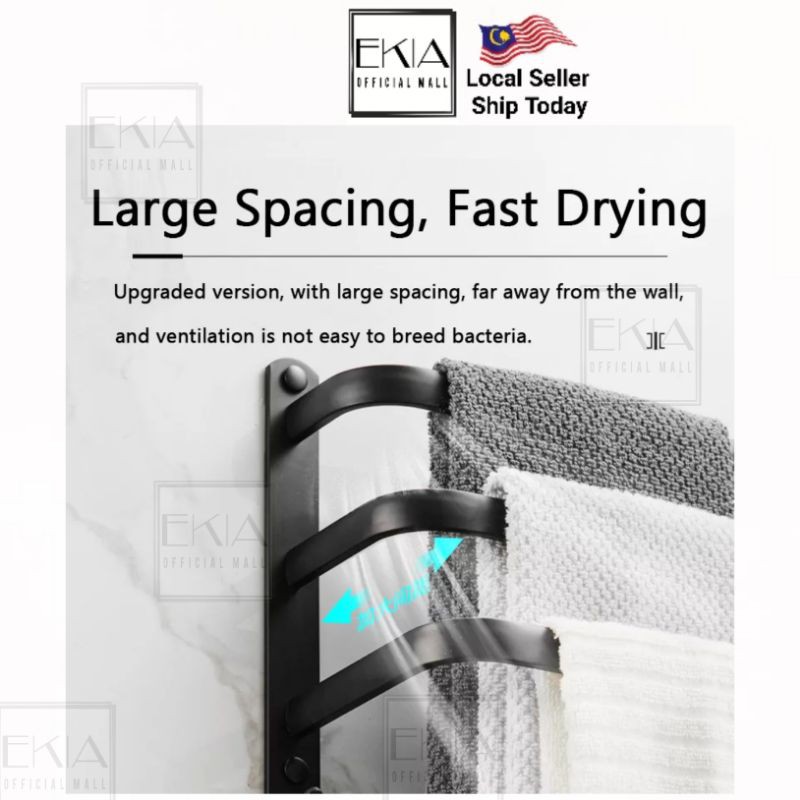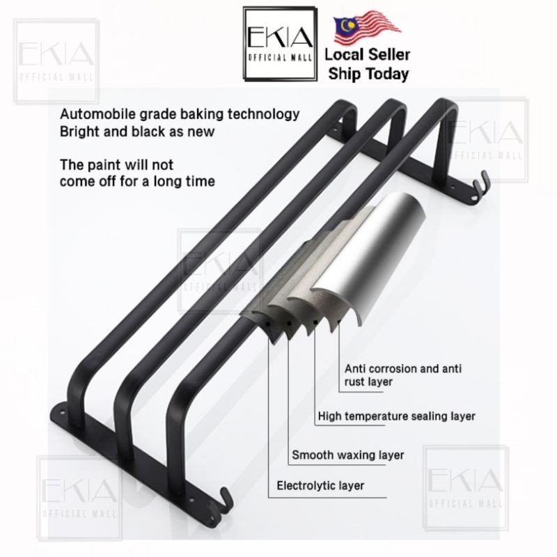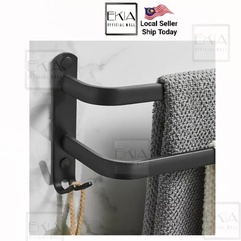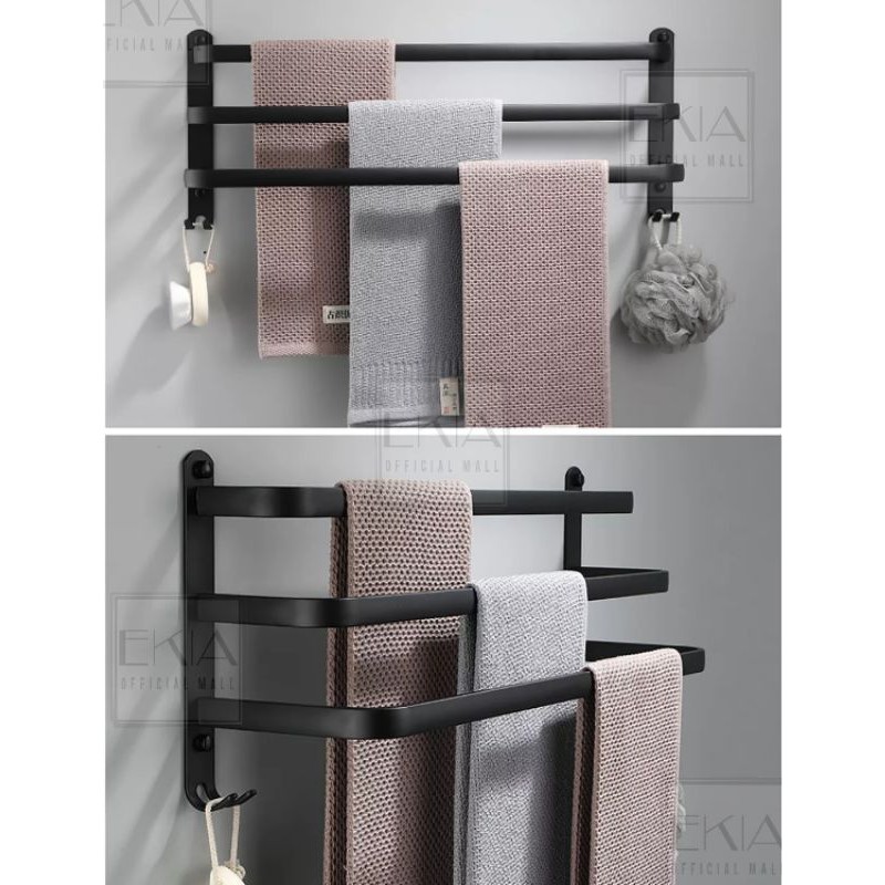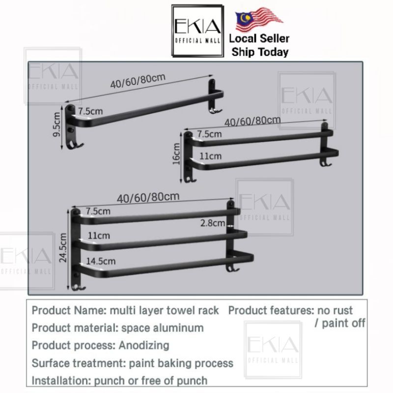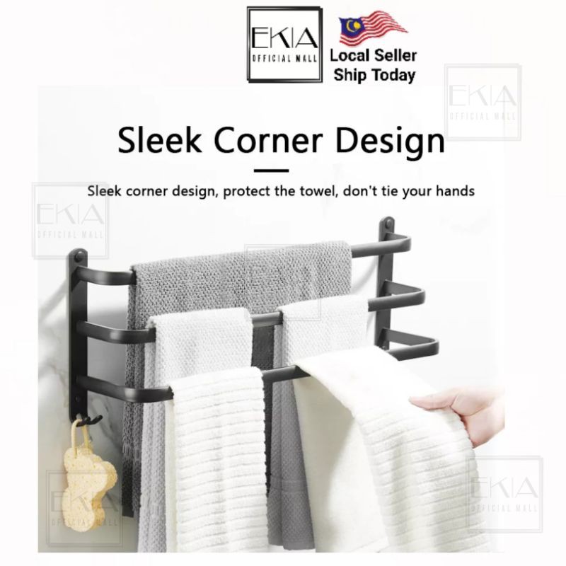 🇲🇾3 Layer Towel Bar Black Aluminium Towel Hanger With Hook Bathroom Rack