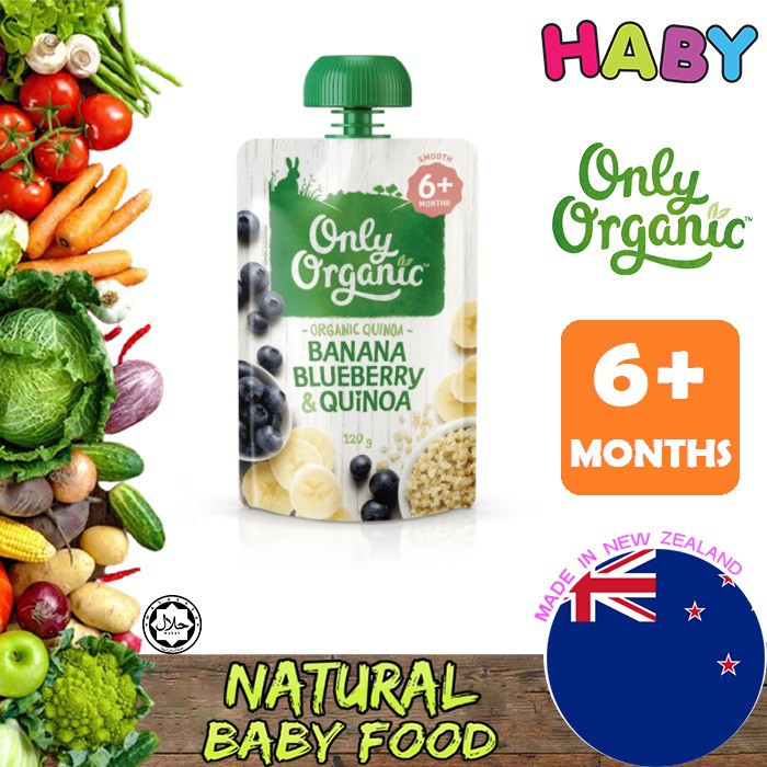 🎉MEGA SALE🎉Only Organic x HABY Puree Organic Baby Food Pouches Banana Blueberry Quinoa (6+ Months)