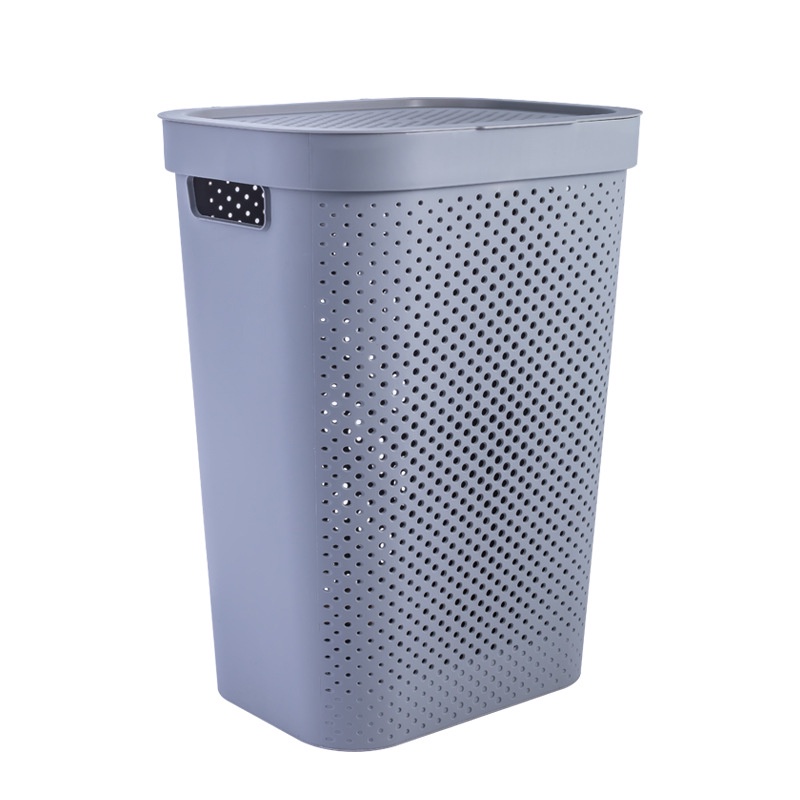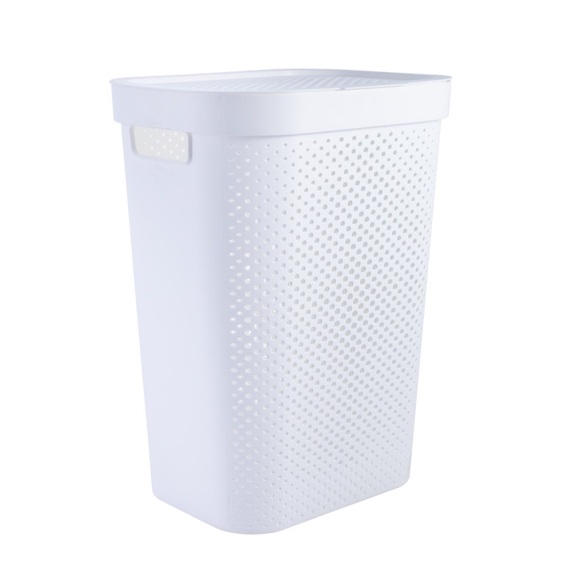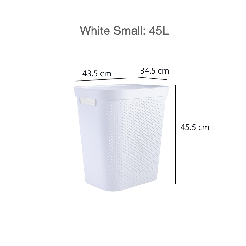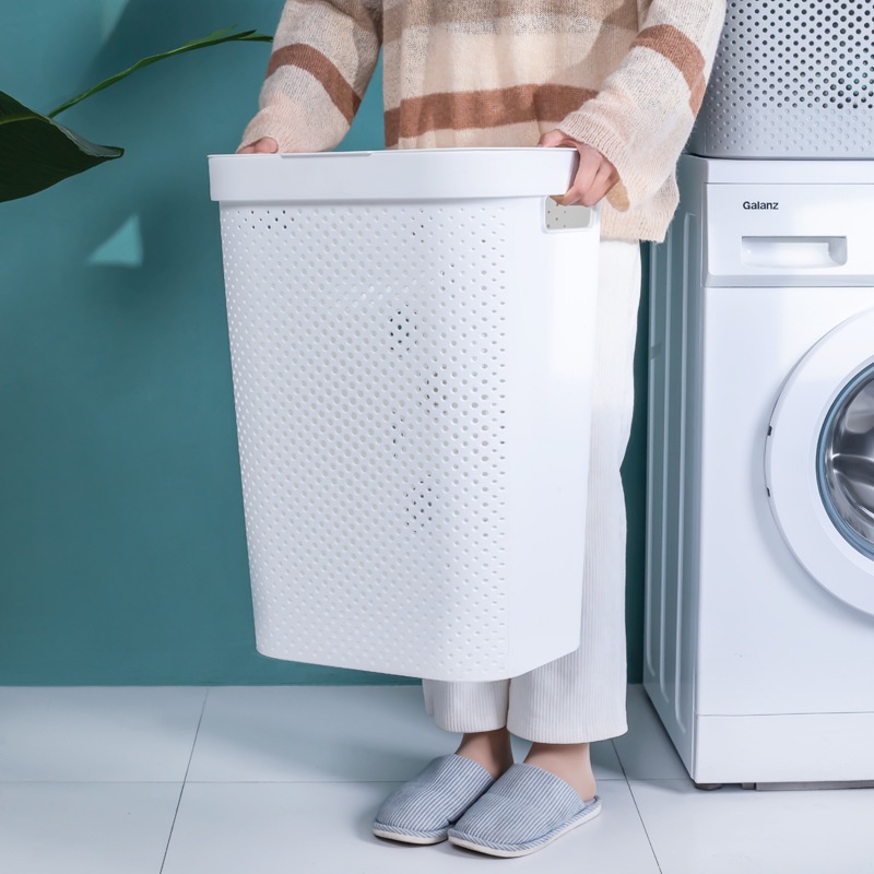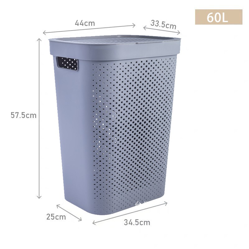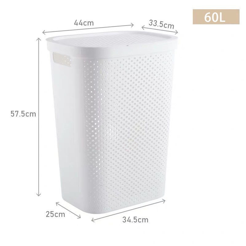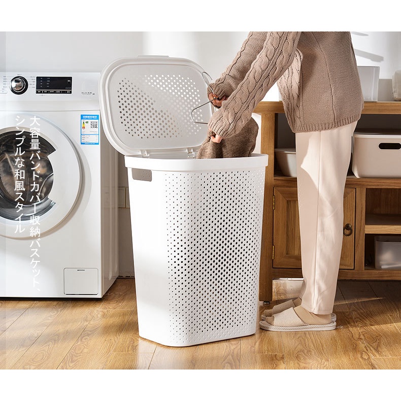 💕ready stock 💕 45L/60L White Gray Laundry Basket Japanese Style with Cover Dirty Clothes Basket plastic/pet cage